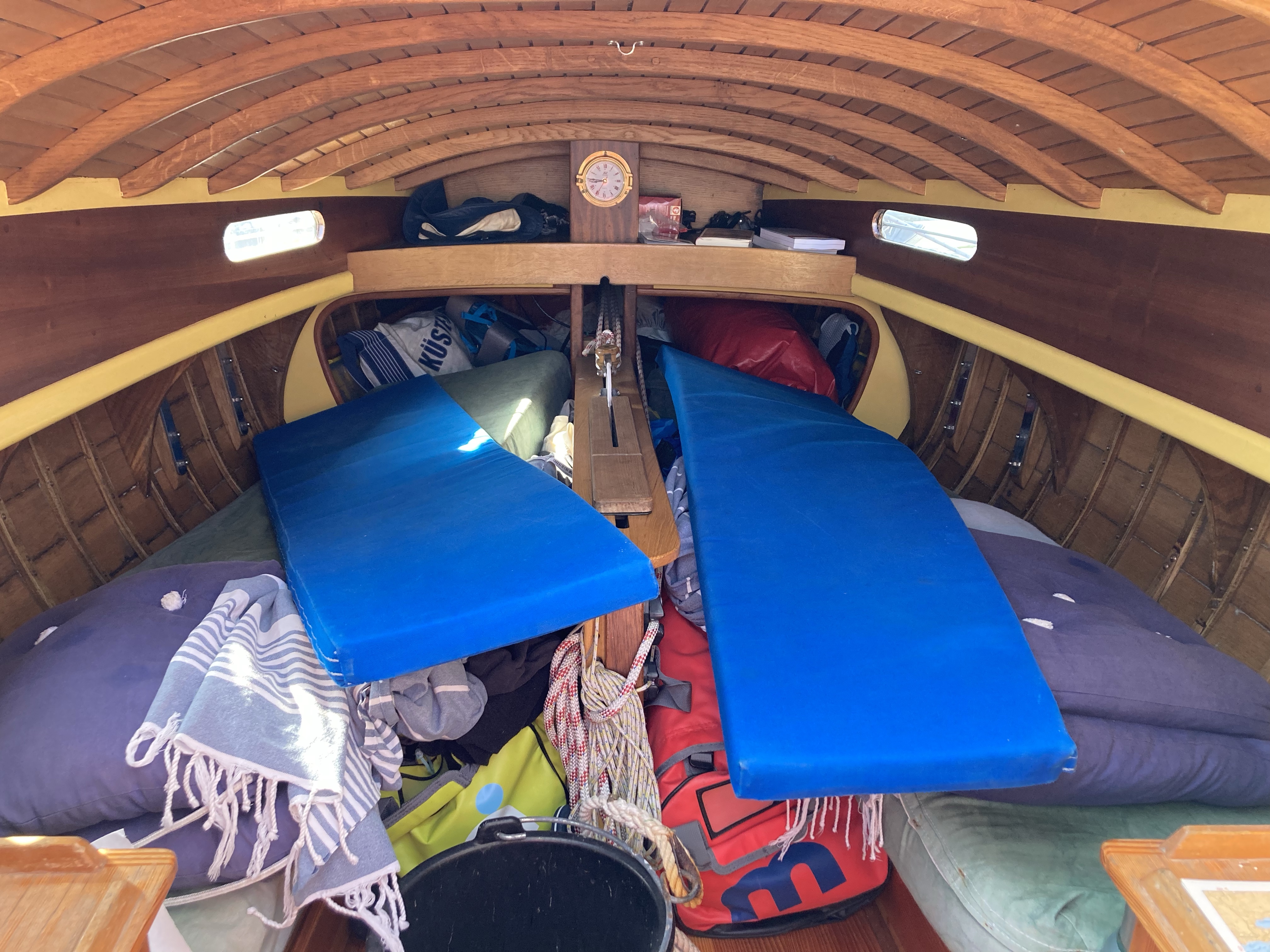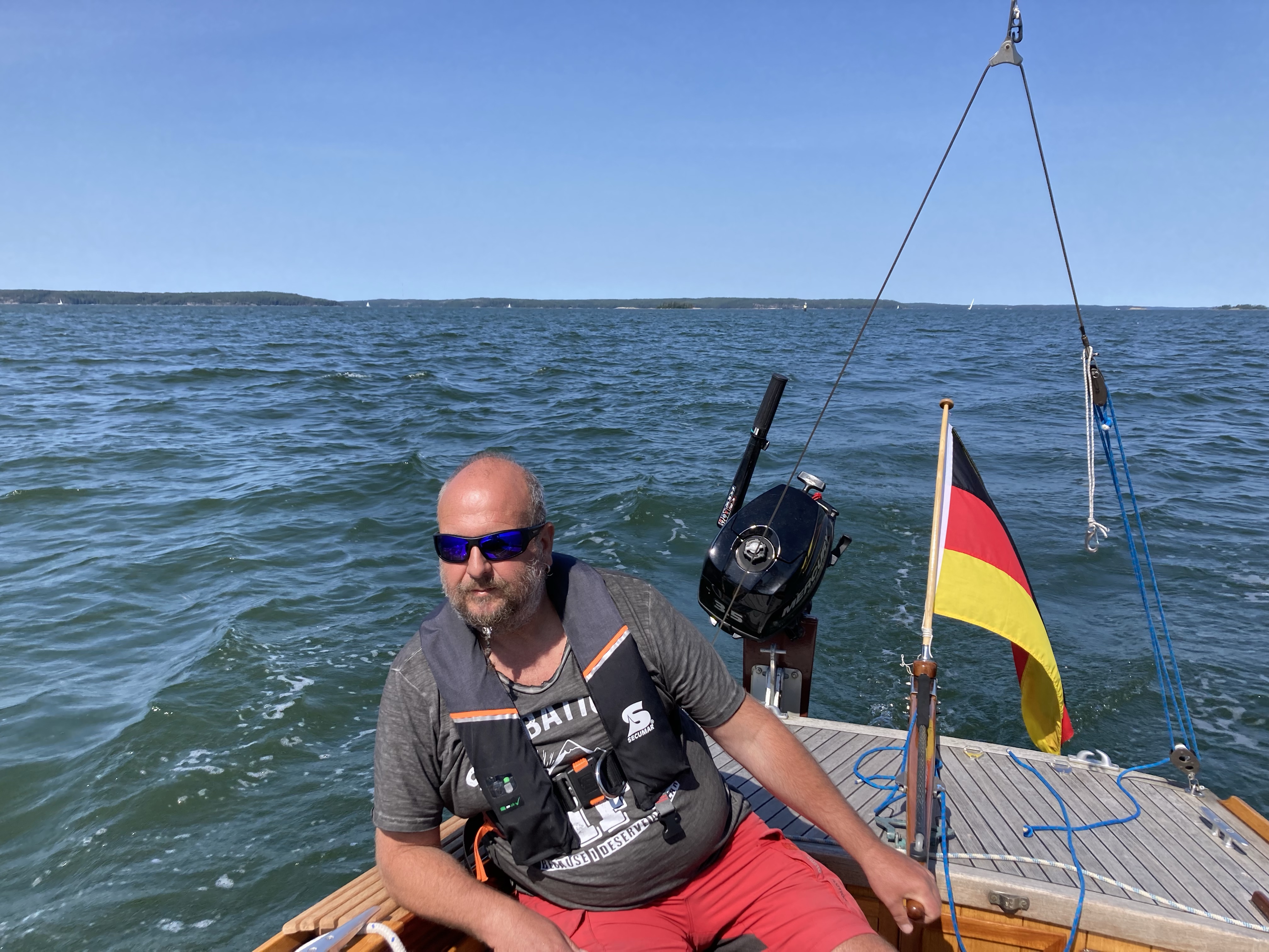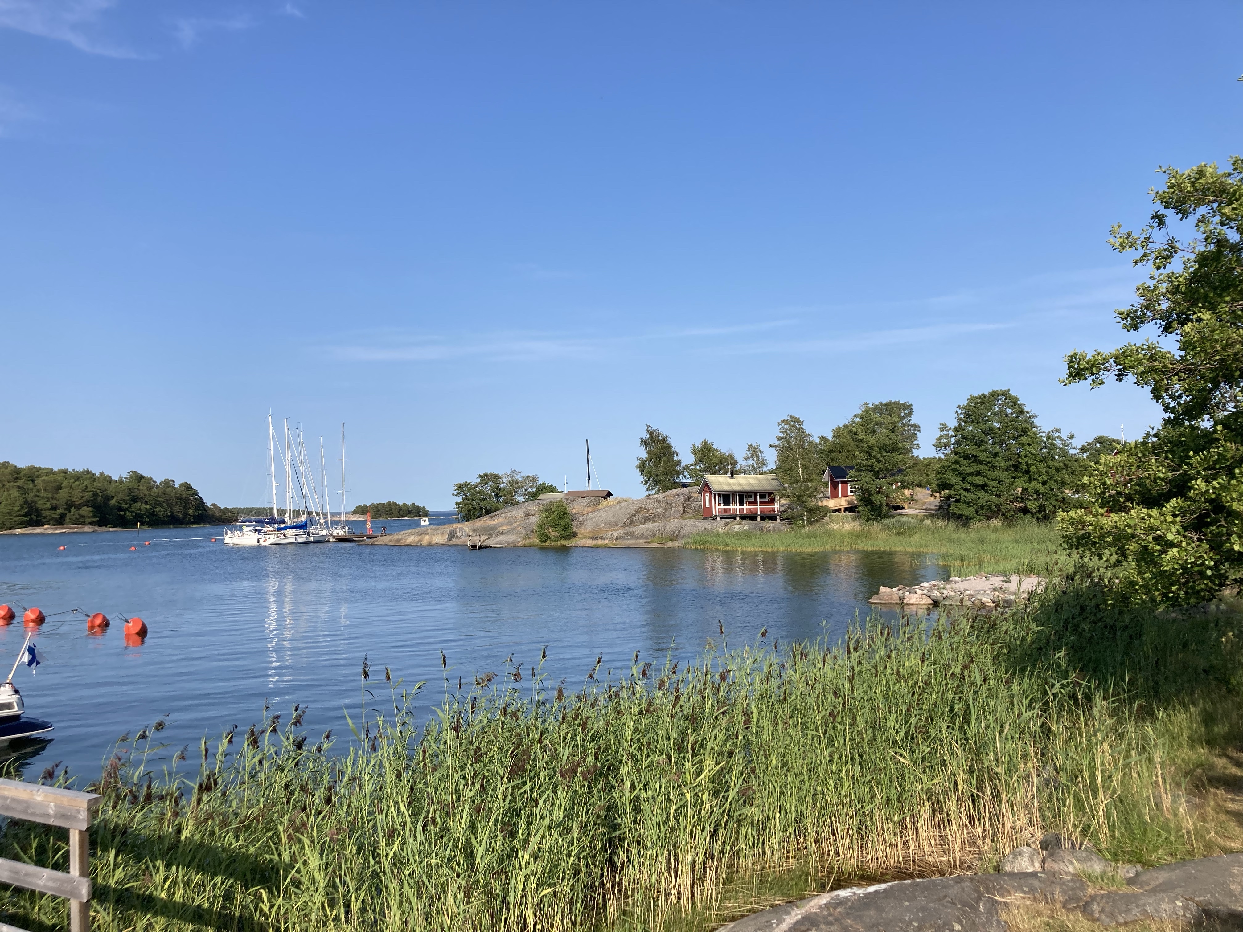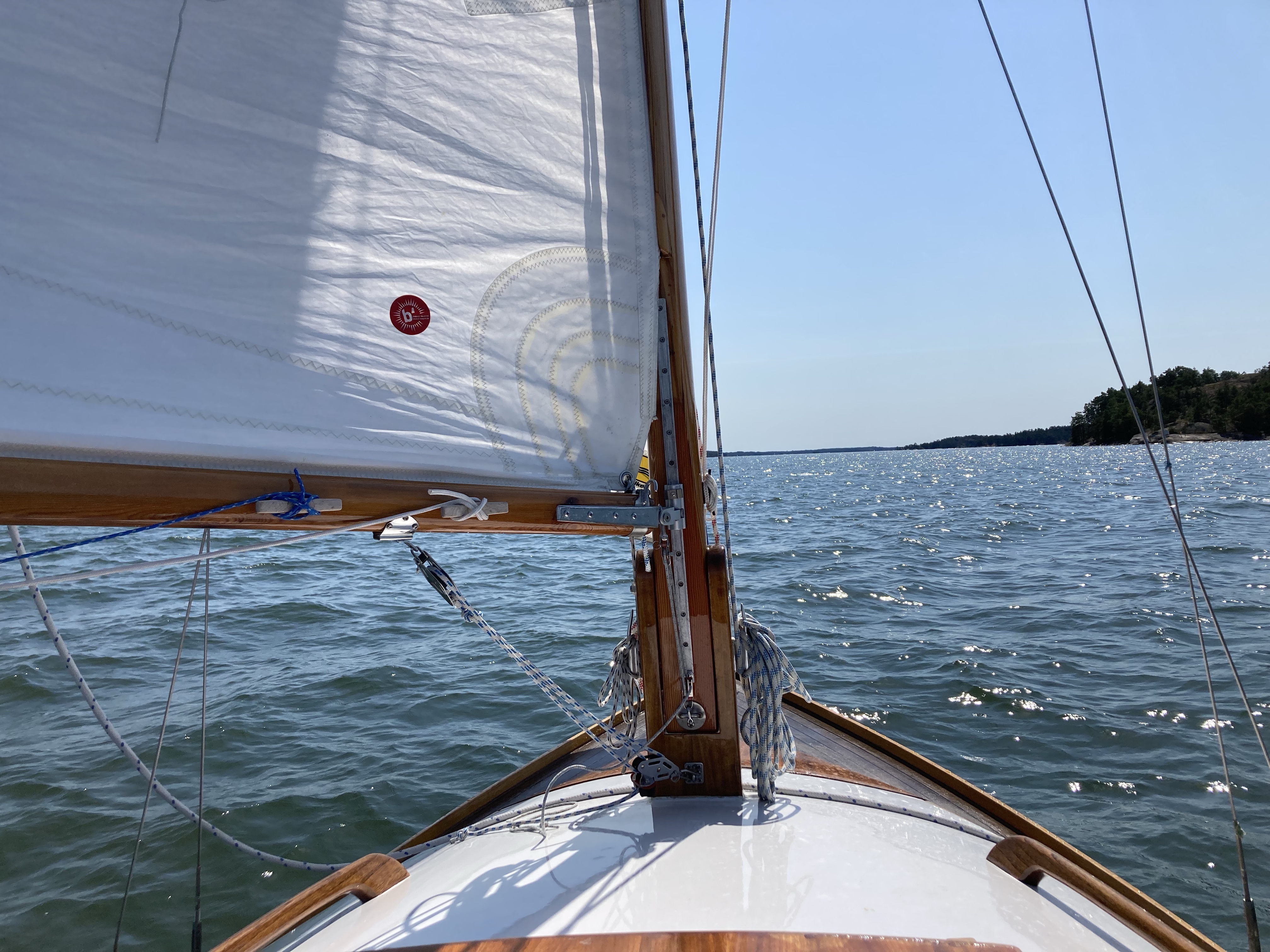 Am nächsten Morgen scheint die Sonne bei WNW 2-3 Bft – jetzt aber! Los! Raus! Nach Süden! Alles ist wasserdicht verpackt oder weg von der Bordwand und “zu oberst” gelegt, denn in unserem Eifer, uns zu Hause für ein Jahr überflüssig zu machen, hatten wir nicht genügend Zeit, das Boot vorzuwässern. Während Europa unter rekordheißen Tagen leidet, kurzehosesegeln wir den Airisto / Erstan mit Schrick in der Schot (auch ein Lebensmotto) entlang (W 3Bft) und nehmen Kurs auf den Örfjärden. Während uns bei der Passage eines schmalen Sundes mal fast der Wind wegbleibt, nimmt er “draußen” zu auf SW 4, so dass wir dort nach ein paar Kreuzschlägen das Groß wegnehmen und unter Fock nach Gullkrona einlaufen.