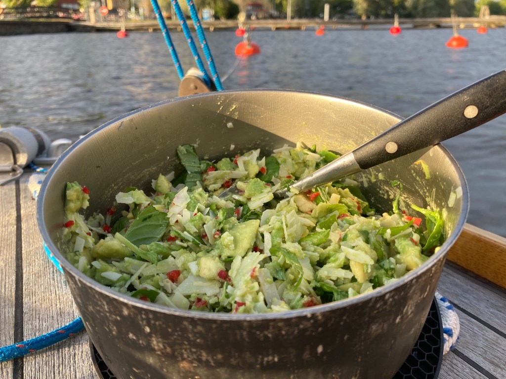 Dieses Rezept eignet sich besonders gut, um es mit den sehr begrenzten Mitteln der Bordküchenausstattung nachzukochen.