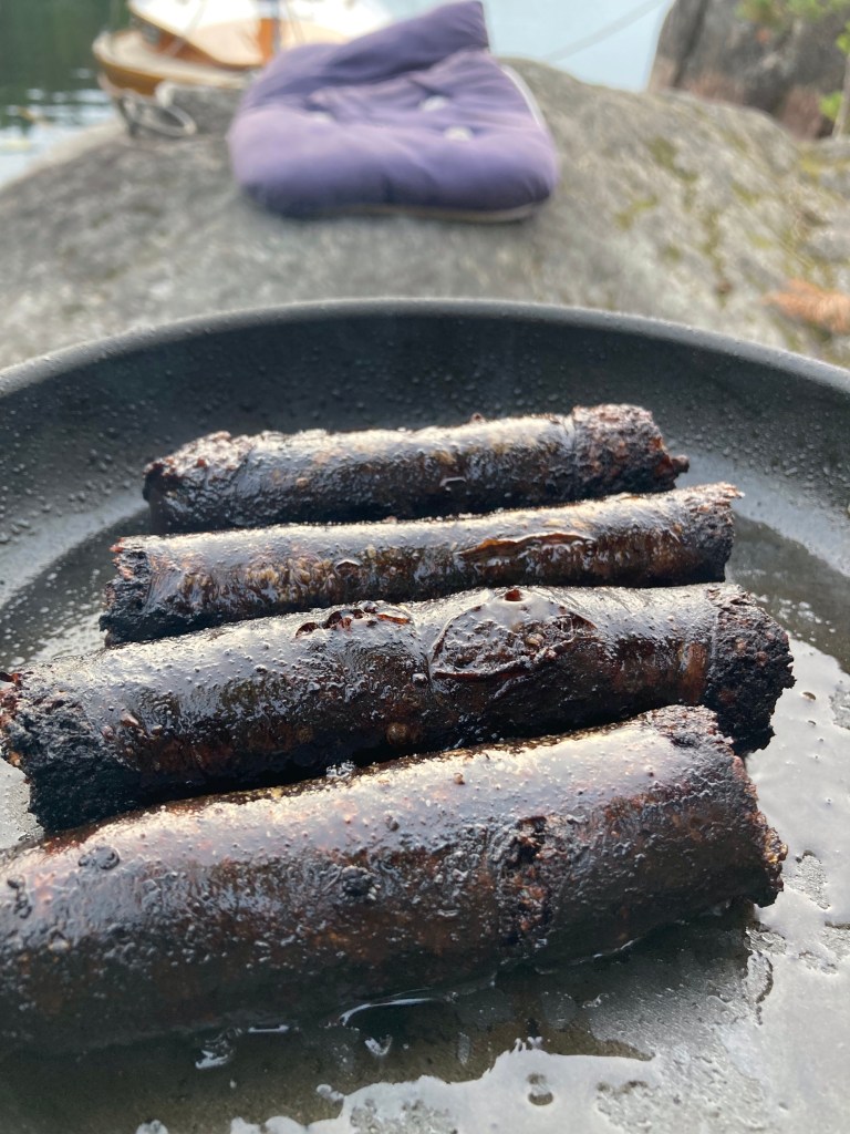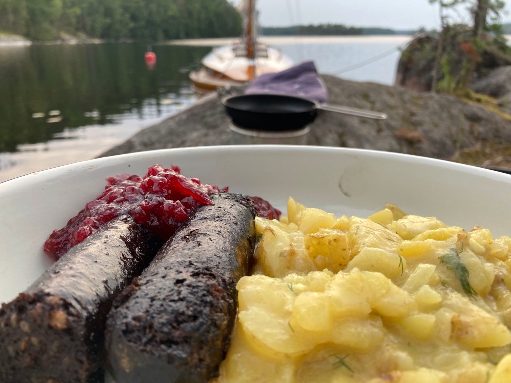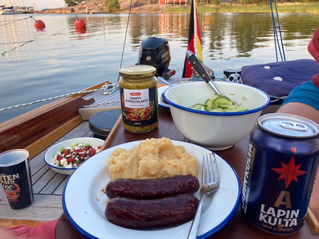 Makkara heißt, musta heißt schwarz, also wörtlich übersetzt – Schwarzwurst. Natürlich gibt es in Finnland auch Grillwurst (grillimakkara) in unterschiedlichen Variationen, mit Knoblauch, mit Käse oder in scharf aber allen Grillimakkara ist gemein, dass sie eher den deutschen Bockwürsten nahe kommen, fein gecuttert, im Saitling, ähnlich wie die schwedische Grillkorv (med mos). Als wir Ende der 80‘er mit dem Segelboot in Mariehamn auf den Ålandinseln waren, haben wir Virpi und Jukka aus Tampere kennen gelernt und uns bei einem fröhlichen Grillabend (wir hatten Thüringer in der Dose dabei) gegenseitig versichert, dass finnische und deutsche Grillwurst super sei, die schwedische aber gar nichts taugt. Für die schwedische Grillkorv bleibe ich bei der Aussage.