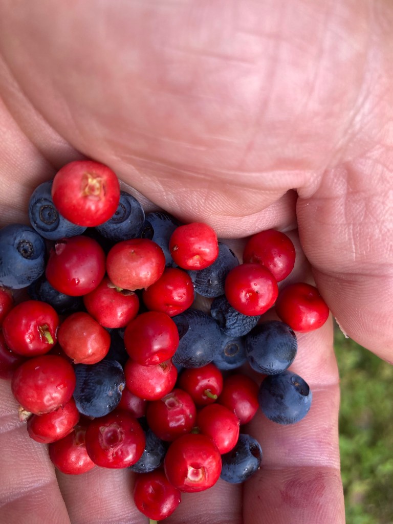 Blaubeeren und Preiselbeeren gibt es im Juli/August in Hülle und Fülle, genug Rohstoff für ein Nachtischchen auf die Schnelle.