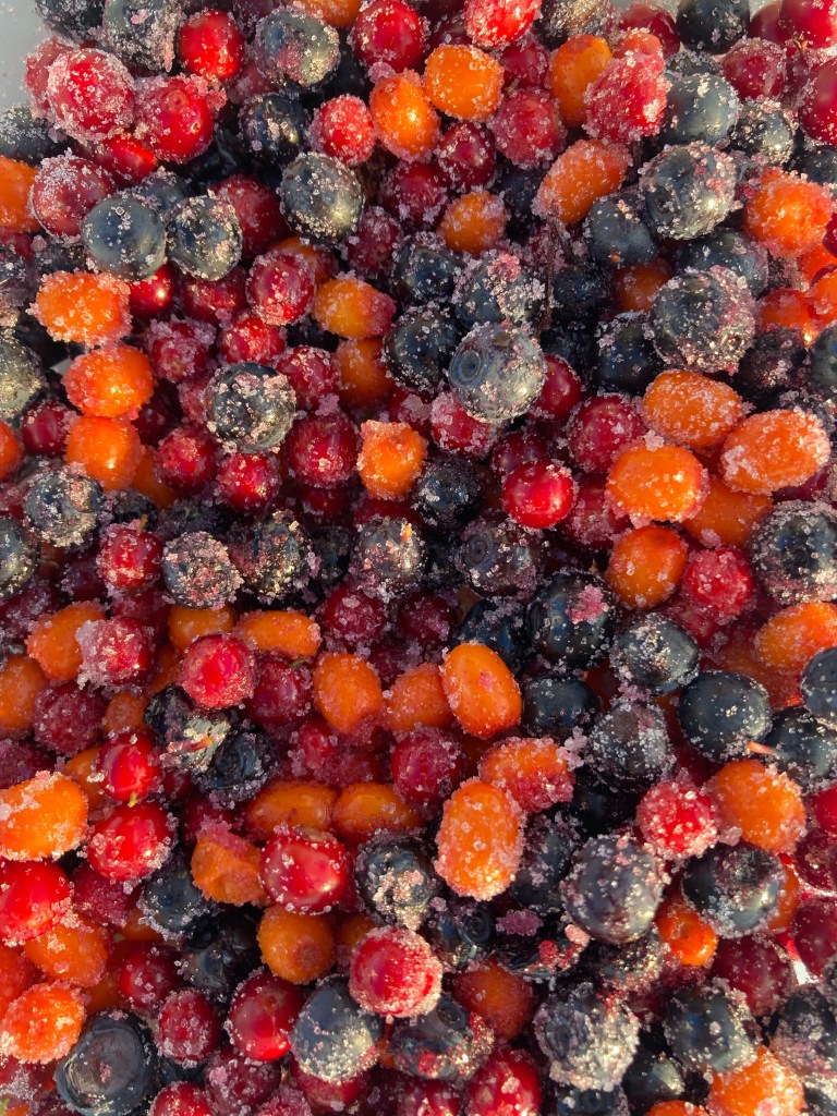 In Södra Kvarken, am botnischen Meerbusen haben wir neben Blau- und Preiselbeeren auch noch Sanddorn gefunden, was natürlich farblich der Hammer ist und, man kann Jogibeerchen natürlich auch mit Kvark (schwedisch für Quark) machen.