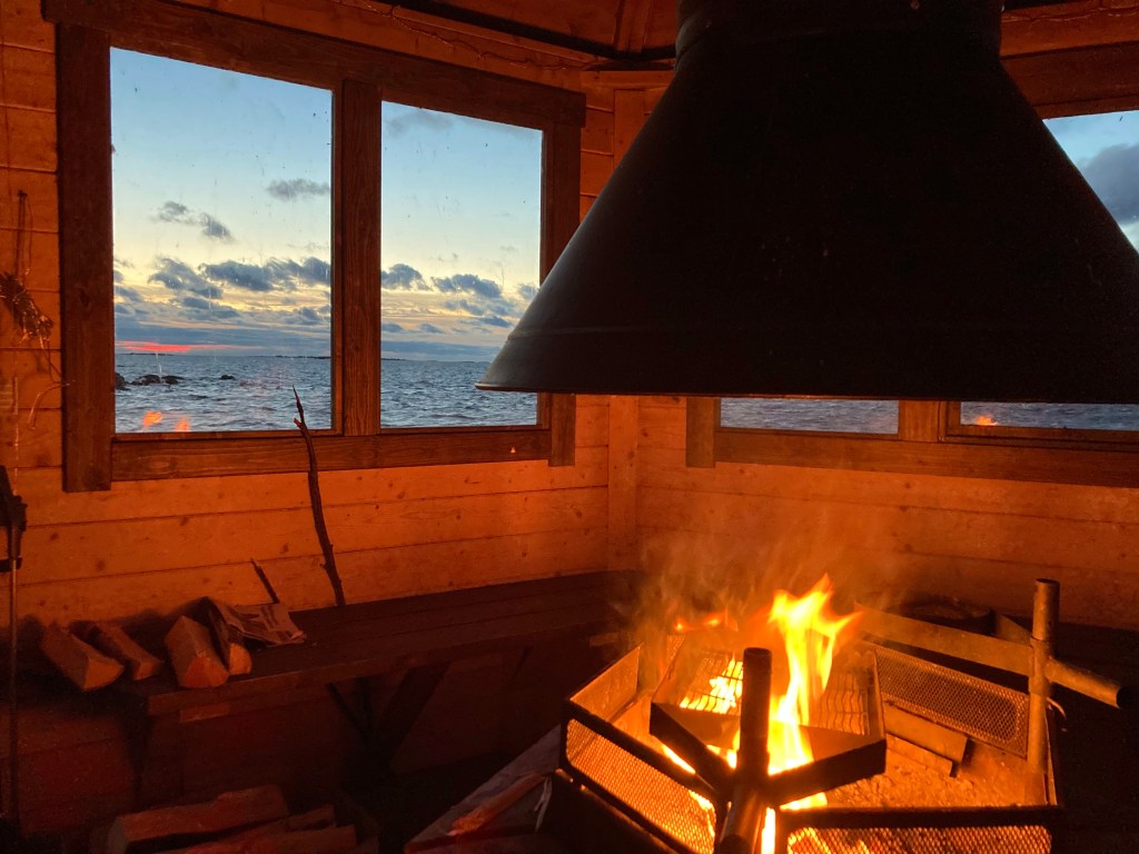 Westlich von Vaasa wird alles gut: wir erreichen über die Replot-Brücke das Weltnaturerbe Södra Kvarken und kommen pünktlich zum Sonnenuntergang über dem Bottnischen Meer den NW-Zipfel von Söderudden, Klobbskat Fiskehamn, an. Ein unkomplizierter Stellplatz am Hafen (mit social-distancing-Handy-App-Bezahlung) und – ein Traum! – einem Grill-Lusthaus auf dem Molenkopf! Tausend Dank an die Hafengemeinschaft! Koteletts mit Blick auf starkwindige Untiefen im Abendlicht am offenen Feuer: wir lieben die Ostsee!