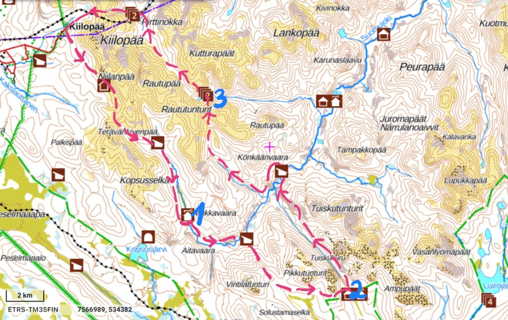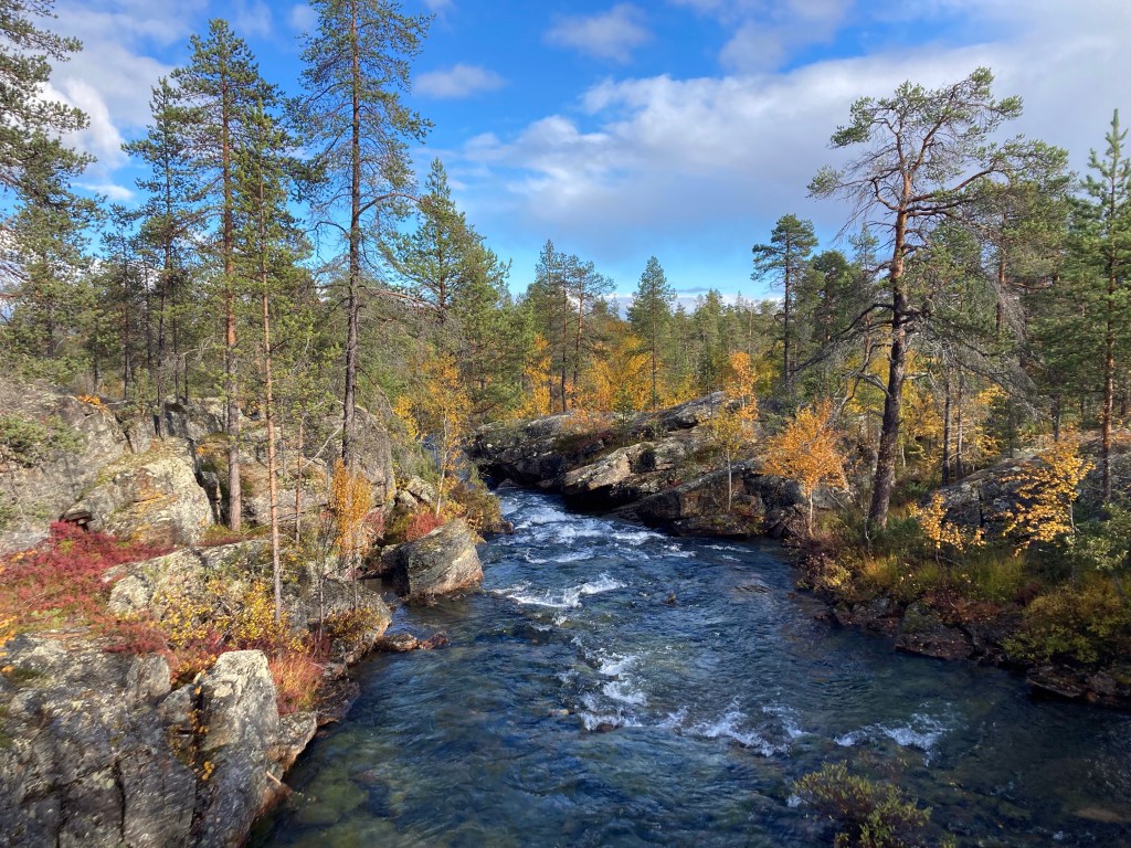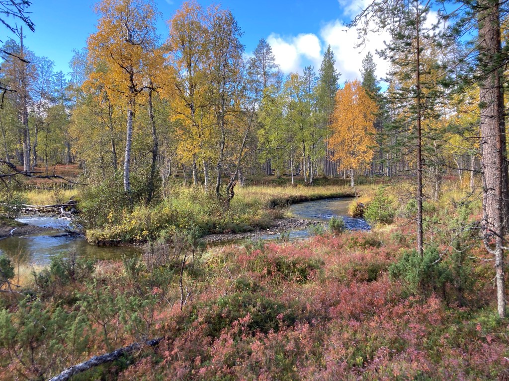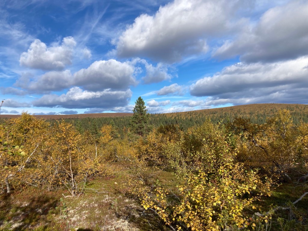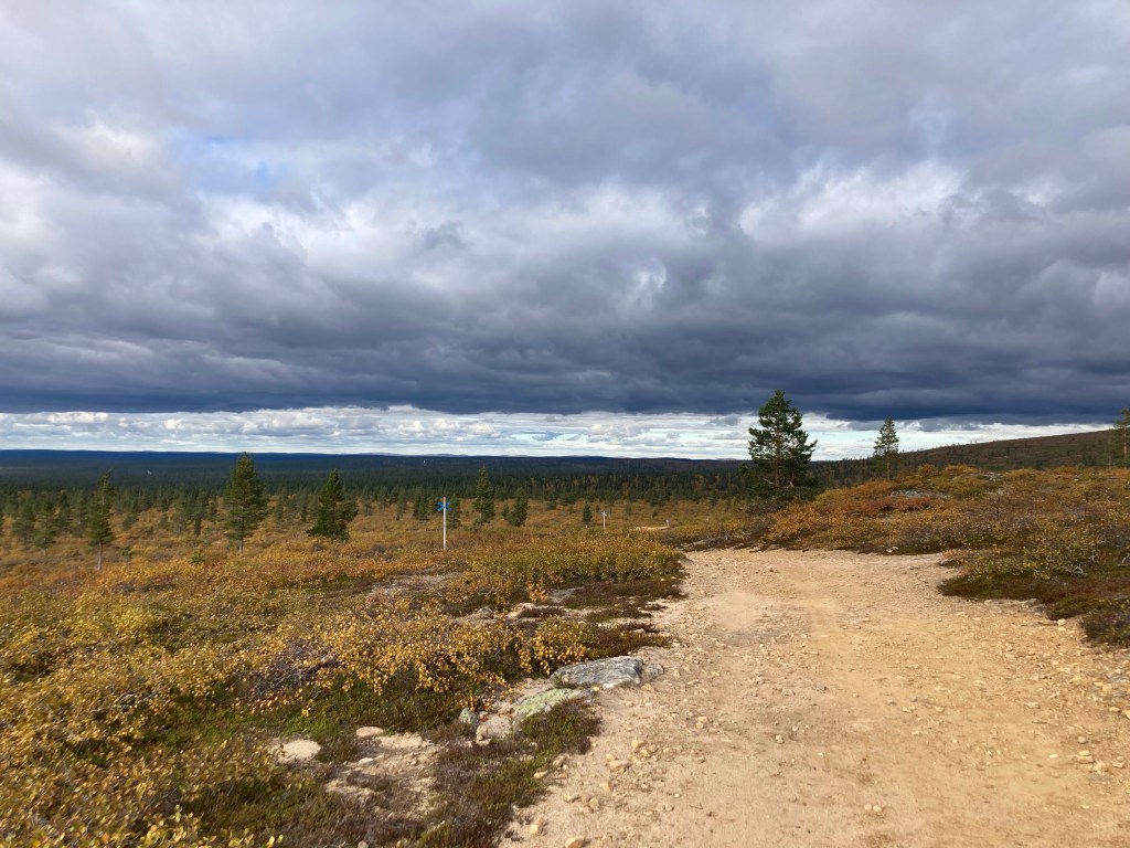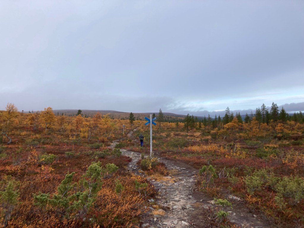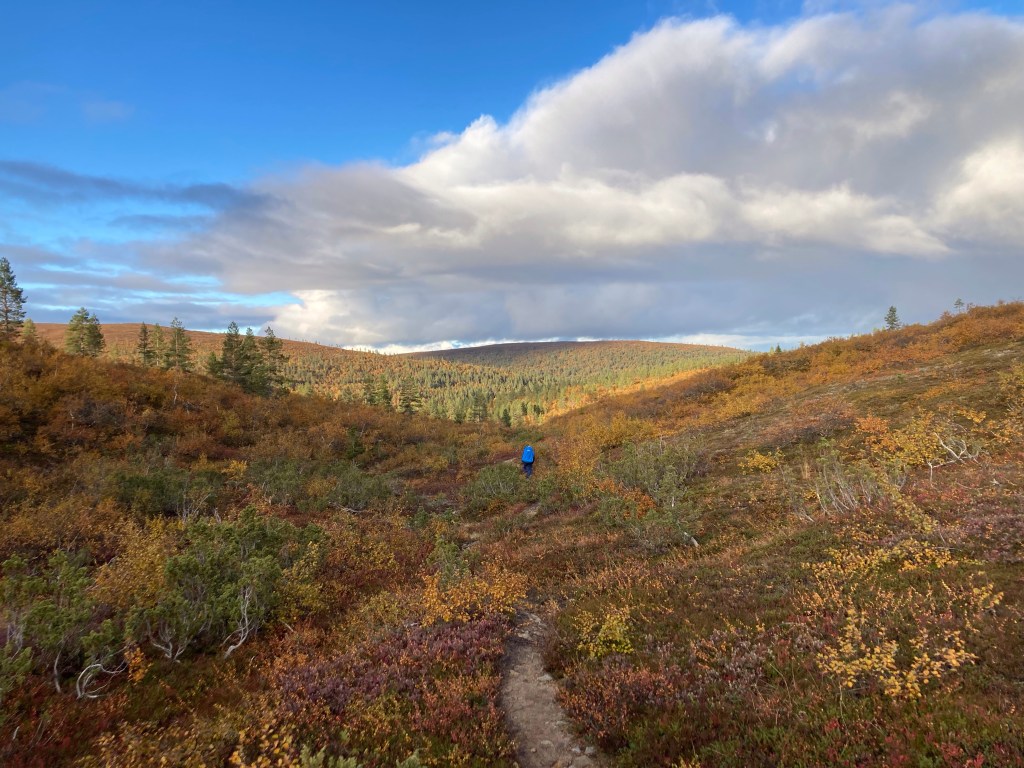 Der Urho-Kekkonen-Nationalpark, Urho-Kekkosen-Kansalliupisto UKK, bot uns den Rahmen für eine Mehrtagestour durch die ruska, die lappländische Herbstfärbung. Ein riesiger, wegloser NP mit einer Vielzahl von offenen Hütten, Feuerstellen und Lagerplätzen in Tagestour-Entfernung, aber außerhalb der sog. „Tourismuszone“ um Saariselkä und Kiilopää herum ohne markierte Wege. Die muss man hier in der „Wildniszone“ schon selbst finden: mit Karte und Kompass (wir) oder GPS (andere) – oder indem man den ausgetretenden Pfaden folgt. Will man den ganzen Park einmal durchqueren, braucht man wohl eine Woche. Wir trafen Tommi, der in 2 Wochen fast keine der Hütten (um die herum meist gezeltet wird) zweimal angewandert hat. Wir wollen uns 2 bis 4 Tage gönnen – je nach Lust, Laune, Fitness und vor allem Wetter. Spoiler: es wurden 4 Tage. Unsere Lebensmittel hätten für einen 5. Tag gereicht, unsere Lust auf einen kalten (so angesagten) Regentag aber nicht.