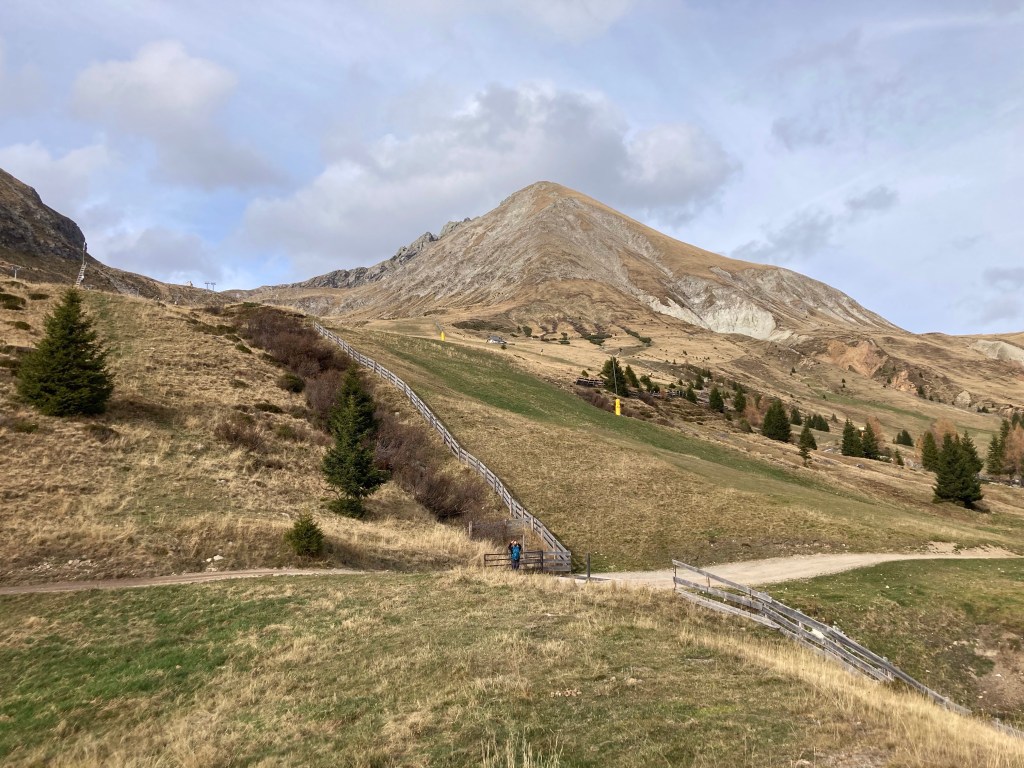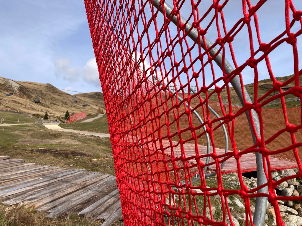 Italien fängt für uns in Südtirol an: vor Mitternacht erreichen wir Brixen und wachen mit Panoramablick auf. Zum Ankommen in Italien gönnen wir uns bekannte Wege. Da wir unsicher sind, ob die Ifinger Hütte noch auf hat (unsere Nr. 2 unter den Südtirol-Highlights), nehmen wir die Seilbahn nach Meran 2000 (ein teurer Spaß) – das Wetter verspricht sehr gute Sicht. Aus der Gondel fällt der Blick auf die Ifinger Scharte: kaum zu glauben, dass wir da mal durchgekraxelt sind! Oben angekommen versuchen wir die Bauarbeiten (ein neuer Skilift) und die Vorboten der Skisaison auszublenden: die Schneekanonen und Skifahrer-Fangzäune warten schon auf ihren Einsatz.