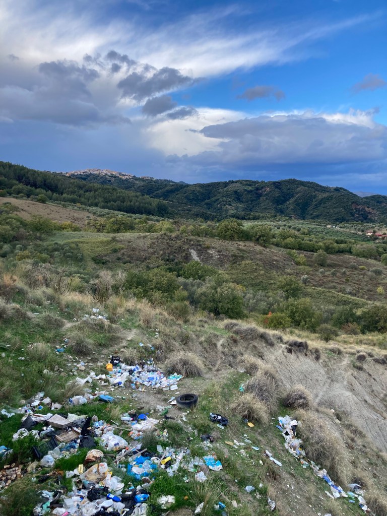 Der Müll! Schon unser ersten Anlaufpunkt, der Strand vor Sibari, hat uns gelehrt, dass wir am Müll vorbeigucken müssen, wollen wir die Schönheit Kalabriens erkennen und uns entspannen. Im besten Fall häuft sich der Müll um nicht geleerte Mülltonnen, je näher man der Ebene und der Hauptstraße kommt, desto vermüllter sind auch die Straßenränder. Oder: je näher man den Bergen kommt, desto weniger Müll liegt (offensichtlich) rum. Die Gründe? Bestimmt vielschichtig! Wir schaffen es immer ohne Probleme (auch im öffentlichen Raum) unseren Müll ordnungsgemäß und sortiert (nach wechselnden Kriterien) loszuwerden. Den geben tut es sie, die Mülltonnen.