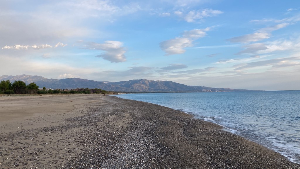 Die Strände! In der Nebensaison bis auf ein paar Angler einsam, verlassene Strandbars, geschlossene Campingplätze, zu ignorierender Müll und immer noch badewarm wie Dänemark im Juli. Vor allem die Bucht von Sibari hat einen sehr hohen Beachlife-Faktor.