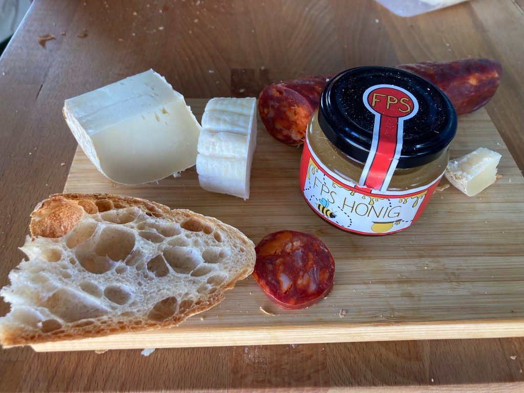 Das Essen! Kalabrien “lebt” von Wein, Oliven und Zitrusfrüchten. Wir auch: Orangen gibt es geschenkt (Agriturismo). Wein gibt es oft für ca. 2€/Liter: irgendeinen lokaler Gebrauchswein. Ansonsten probieren wir ein paar autochtone Rebsorten durch: Gallioppo, Magliocco, Greco Nero und Bianco – je nachdem was gerade “offerte” für 3,60€ ist. Was gut ist, kaufe ich nochmal für zu Hause. Käse: neben mezzo-festem Ricotta und weichem Pecorino ist Provole der übliche Kalabrien-Käse: wie gereifter Mozzarella mit Butterkäse-Konsistenz. Kalabresische Salami ist gerne Peperoncino-rot, und wie Sopressata gibt es sie in picante und dolce, besonders feurig ist Nduja.