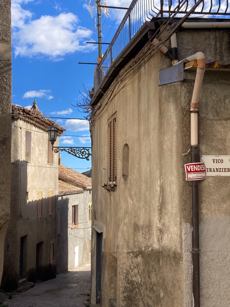 Die alten Häuser! Ein typischer kalabresischer Ort in Küstennähe besteht aus zwei Teilen: zunächst aus einem alten Ort im Hinterland oder centro storico: An und auf die Hügel kauern sich dicht gedrängt traumhafte Dörfer, die uns Alt-Haus-Liebhaber seufzen lassen. Unten an der Küste, an der strada statale und der Bahnlinie liegt dann der neuere Ortsteil, Marina (mit allen zivilisatorischen Hässlichkeiten) oder Lido (im November Touristen-verlassene Lost Places). Bestimmt leiden die Bergdörfer besonders unter der Land- und Kalabrien-Flucht: Überalterung und Leerstand in alten Mauern, romantisch aussehen tut es trotzdem.