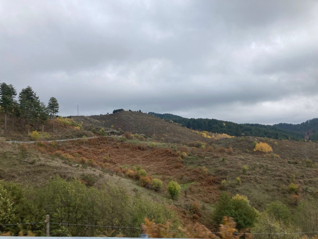 In der Annahme, in einem Nationalparkzentrum in Italien könnten wir gute Tipps kriegen oder zumindest eine Wanderkarte erwerben, kurbeln wir uns nach Cupone in den Sila NP hoch: tolle Landschaft! Wir merken, dass wir auch in diesem Punkt von Finnland und dem metsähallitus verwöhnt wurden. Der freundliche Mitarbeiter hier oben informiert uns, dass wir vielleicht eine Karte unten in der Stadt kaufen könnten. Hier könnten wir jetzt den Weg 2 (3km) oder den Weg 5 (9 km) wandern – siehe Infotafel. Enttäuscht vertreten wir uns die Beine und versuchen dem geologischen Park etwas didaktischen Wert abzuringen. Ist eh zu kalt hier oben. Dann halt weiterhin mit mapy.cz. (Ich liebe Papierkarten!)