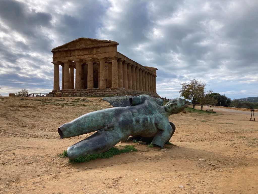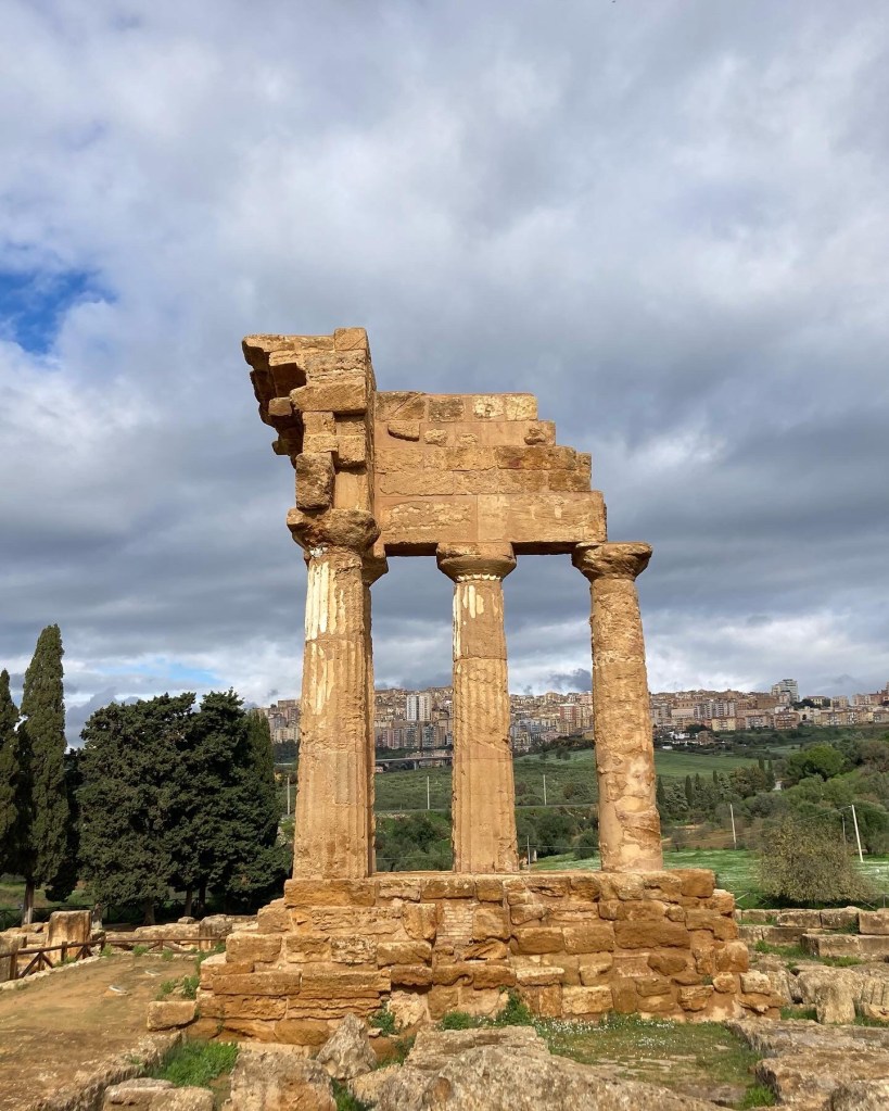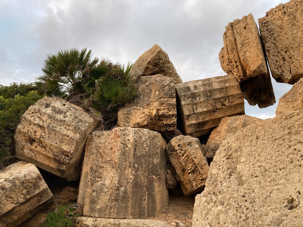 Die Tempel von Agrigento, die zum Teil in Einzelteilen rumliegen(*) und zum anderen Teil (vor allem in der ersten Hälfte des 19. Jahrhunderts = Nationalromantik / Guldalder auch hier) zusammengepuzzelt und mit Hilfe von Ersatzteilen wieder aufgestellt wurden, liegen auf einem 2km langen Felsrücken nahe am Meer. (*)oder Dank Nachnutzung als Gotteshaus für diverse Nach-Götter erhalten blieben und lediglich von ihrer christlichen Einbauten befreit werden mussten