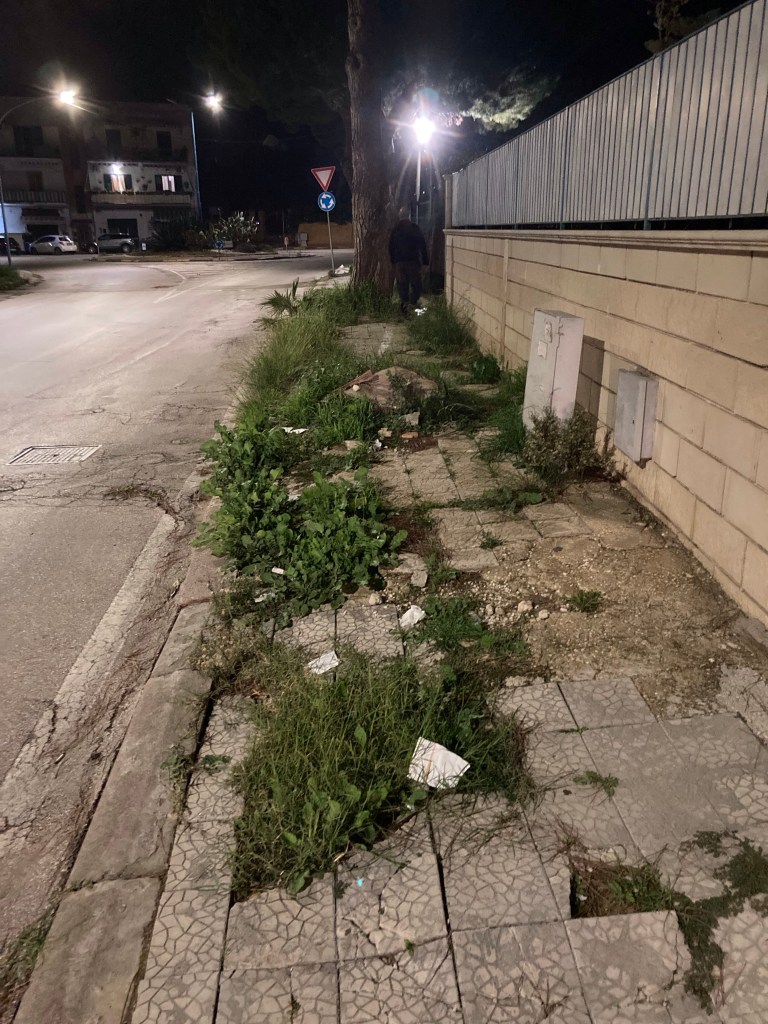Nahe Agrigento hat in San Leone noch ein Campingplatz und zwei Gelaterie auf, ansonsten ist der Badeort in Wassernähe voller hocheingezäunter Ferienhäuser eher Besserverdienender (dicke Autos, kleine Hunde, nicht begehbare Gehwege) ziemlich trostlos. Unten im Ort kein Lebensmittelladen, aber zwei Tierärzte (für die kleinen Hunde) und Schicki-Micki-Bars, in denen sich die Bessergekleideten ihre Markenhöschen auf den Plexiglasstühlen plattsitzen – gut sichtbar durch Panoramafenster in steriler Neonbeleuchtung. Immerhin: unser südlichster Punkt (dieser Reise und bis jetzt überhaupt) ist ein Eis mit Sonnenuntergang auf dem Lungomare.