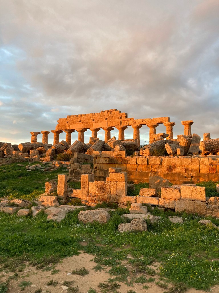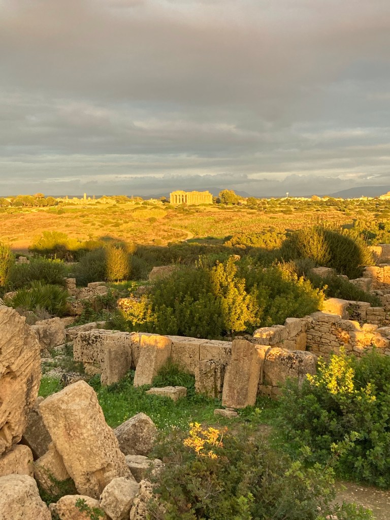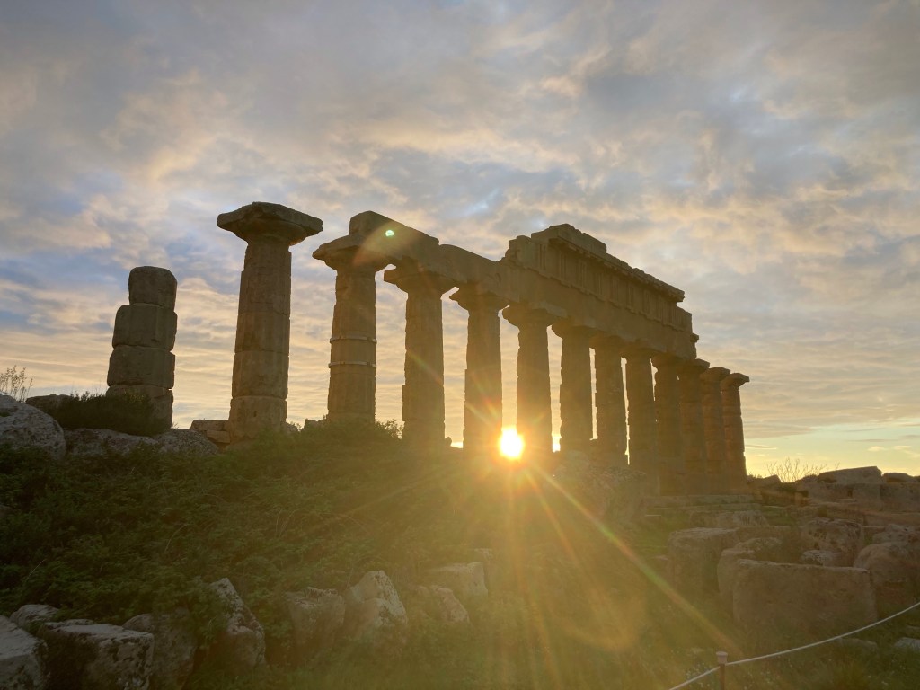 In Selinunte haben sich die alten Griechen wieder einen wunderbaren Ort zum Siedeln ausgesucht – in begehrter Lage, denn nach ihnen kamen noch die Byzantiner, Normannen, Katharger, Römer, Araber, … Nicht nur die Lage, sondern auch die Aufmachung dieses Archäologie-Parks hat uns am meisten Spaß gemacht. Hier verstehen wir endlich, was die U-förmigen Aussparungen an den Steinblöcken sollen (Agrigento hatte die Frage aufgeworfen, aber nicht beantwortet): die Dinger hätte man sonst nicht kranen können. Und auch sonst wird uns hier anschaulich gezeigt, wie die alten Griechen diese unhandlichen Steinblöcke zu riesigen Tempeln aufzutürmen geschafft haben. Zwei Tempel sind wieder aufgebaut (mit dem was man gefunden hat und einigen Ersatzteilen), der Rest liegt (als Bausatz) noch herum. Kombiniert mit anschaulichen Infotafeln und nachgebauten „Baumaschinen“ ergibt sich hier ein schlüssiges Bild. Leider schließt der Park schon mit Sonnenuntergang (typisch Italien wäre jetzt 19:30 gewesen) – hier hätten wir uns länger vergnügen können.