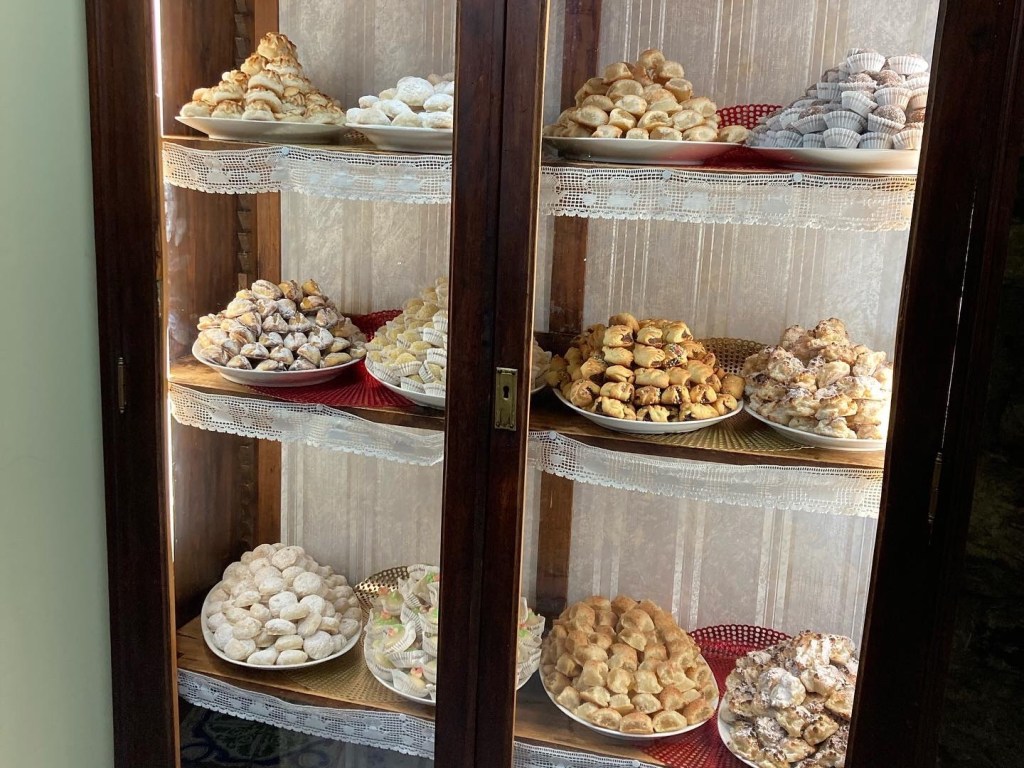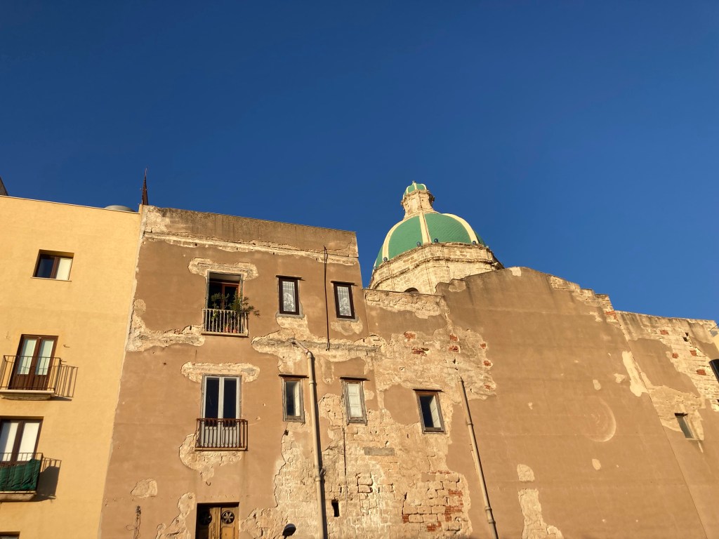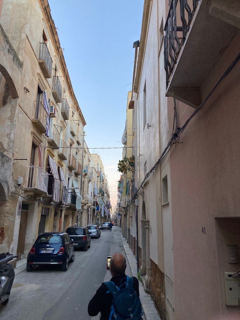 In der Ansteuerung auf die Gegend kurbeln wir uns noch in den Ort Erice hoch, der auf einem singulären Berg in 700 Metern Höhe meeresnah über der Gegend trohnt – und deshalb seine enge Altstadt meist in Wolken verhüllt. Unten bestes Wetter, oben spooky Nebelschwaden und Mützenwetter. Der Besuch in der Pasticceria von Maria Grammatico ist laut Reiseführer und Va Sentiero ein Muss: ich mag Süßes! Ein wunderbarer Nachtisch für den viel zu dunklen lauen „Sommer“-Abend.