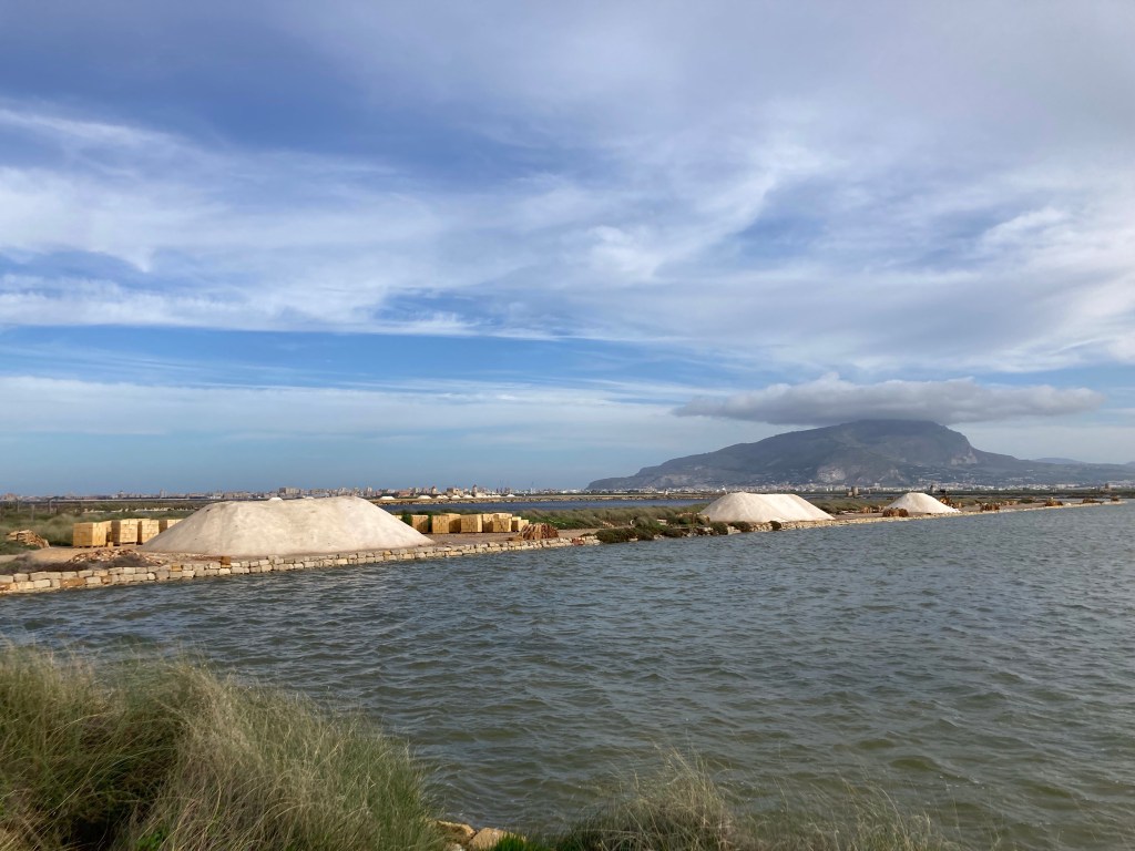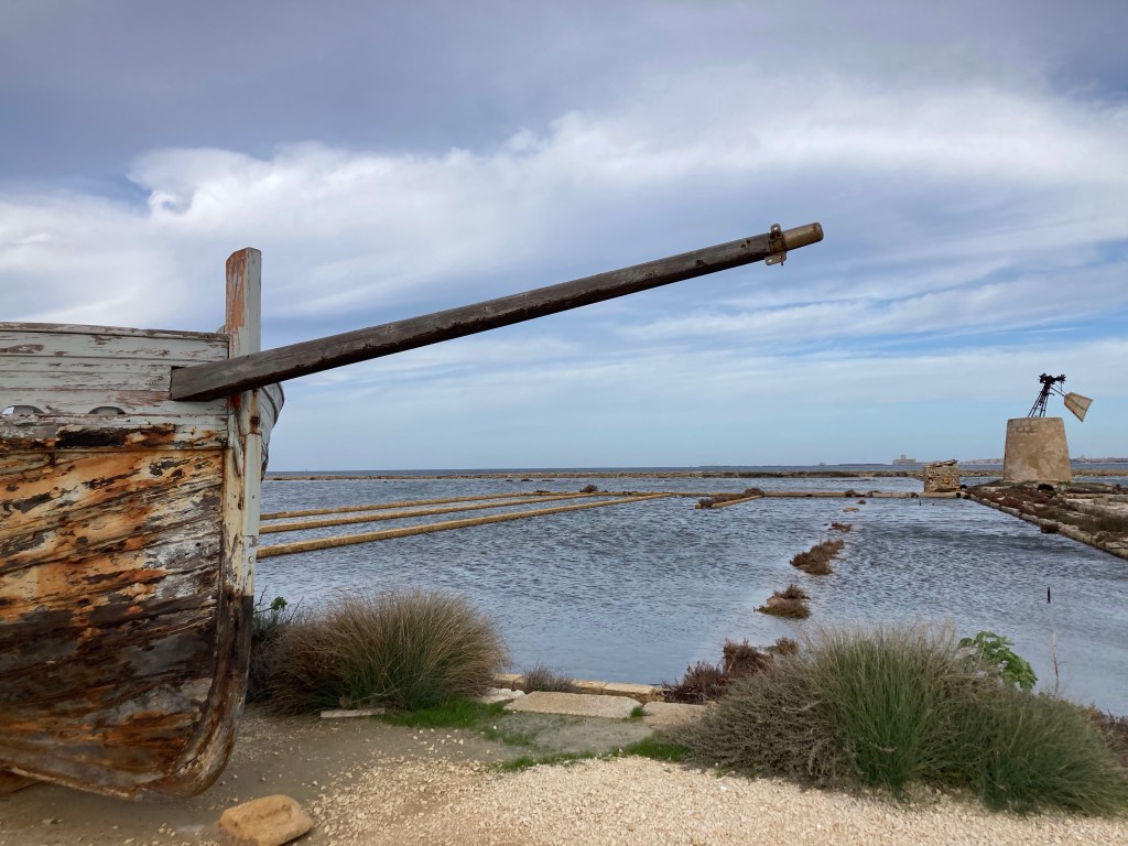 Zu Hause wird es winterlich kalt, wir haben keine Lust auf Rückreise im Schnee, und Weihnachten naht: wir werden verbindlich und buchen die Fähre Palermo – Genova. Die verbleibenden zwei Tage bummeln wir durch die Gegend, genießen das Nix-Müssen, essen Eis, kaufen Mitbringsel (kulinarische natürlich), tauchen in Trapani ein, bilden uns in Sachen Meersalz und lassen den Bulli nochmal durch ein bisschen Hinterland tingeln. Trapani war ungeplant und unerwartet spannend: Hafen in der Abendsonne, Altstadt mit laaaaangen, engen Gassen, in der die italienische Weihnachtsbeleuchtung langsam Fahrt aufnimmt (es muss blinken, das ist gang wichtig!) und in vielerlei Hinsicht dicht dran an Afrika (wollen wir im Februar nach Marokko?). Nachdem wir uns in der Trattoria La Pergola sehr lecker Lievpien freeten hebt, bietet uns der „Hafen“ von Nubia nochmal einen Stellplatz mit Meerblick – inklusive Fernweh (Lust auf Nordafrika?).