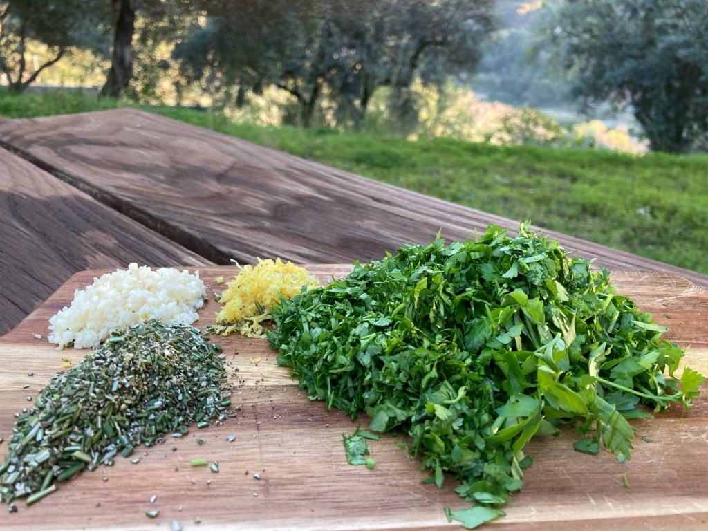 5-6 EL Olivenöl, 2-3 EL Creme di Balsamico, den Abrieb und Saft einer Zitrone verrühren und kräftig mit Salz und Pfeffer und 1TL Zucker abschmecken. Den feingehackten Knoblauch (3-4 Zehen) und Rosmarin (Nadeln von 2-3 Stängeln), das Grün vom Fenchel gehackt sowie die gehackte Petersilie (1-2 Bund) dazugeben ,alles umrühren und nach und nach die fertig gegrillten Gemüse unterheben.