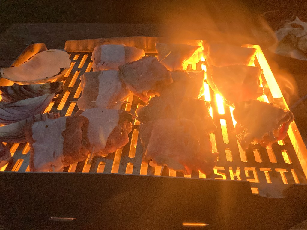 Und tatsächlich, die kleinen Happen springen einem förmlich in den Mund. Als Beilage gab´s Brot und gegrilltes Gemüse.