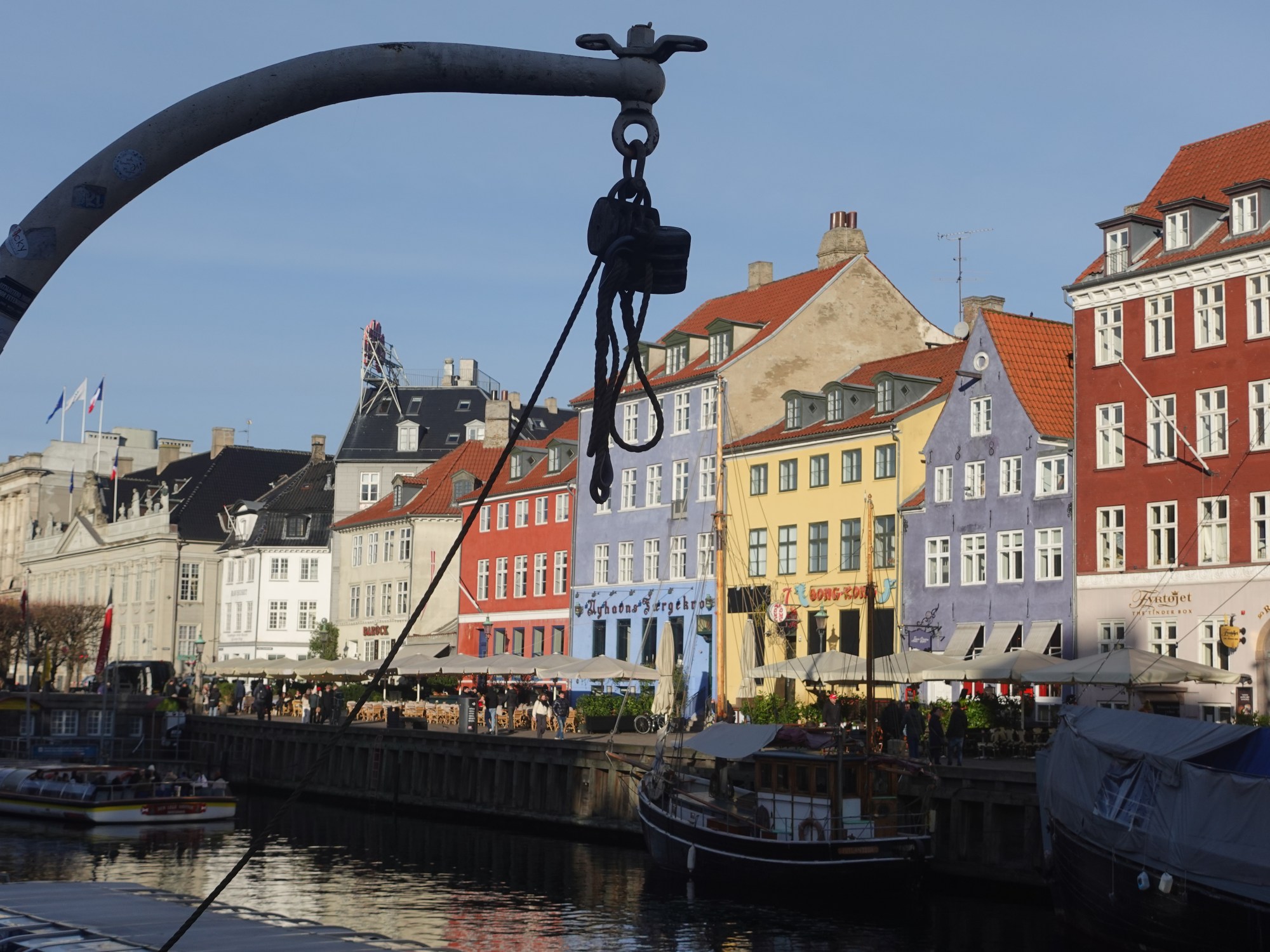 Der Kanal Nyhavn verbindet den Hafen mit Kongens Nytorv und war bei seiner Fertigstellung der „neue Hafen“. An seiner Nordseite (der Sonnenseite) entstanden nach und nach die bunte Reihe von Giebelhäusern, die heute eines der Wahrzeichen Kopenhagens sind. Früher wie heute findet man im Erdgeschoß Tavernen, Bars und Restaurants. Auch H.C.Andersen hat eine Weile hier gewohnt. Im Sommer ist die Nordseite proppenvoll, im Januar aber entspannt leer. Weiter gehts über die