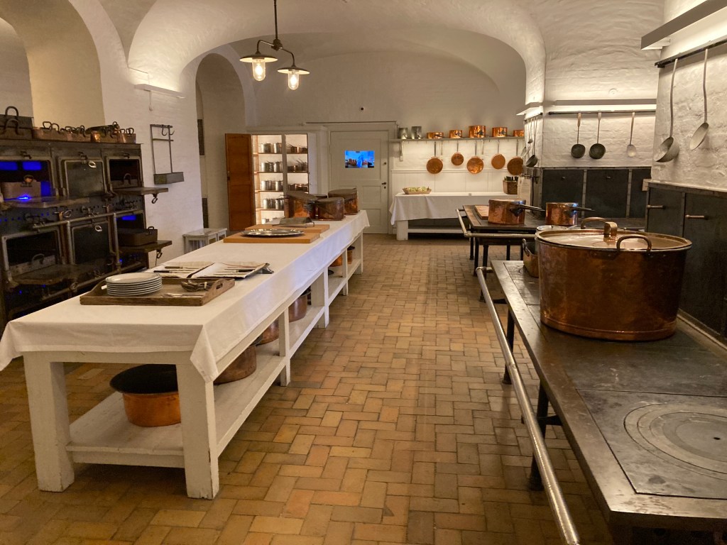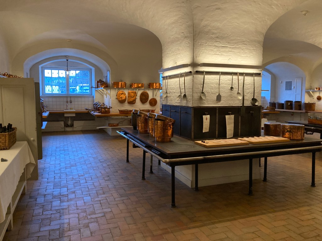 Die alte Schlossküche ist komplett erhalten und dient als Ausstellungsraum für alte Küchengeräte, Kupferkessel, Geschirr usw.