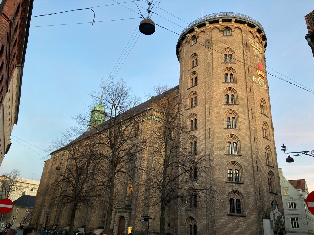 Christian IV hat ihn 1642 erbauen lassen. Das besondere an diesem Turm ist der Schneckengang, der sich 7,3 mal um den hohlen Kern windet und so breit ist, dass man mit einer Pferdekutsche bis nach oben fahren kann. Jede Windung gewinnt 3,74 m Höhe, was zu einer Steigung von 10% außen und 33% innen führt. Wenn man dann noch 59 Stufen erklimmt, erreicht man die 34,8 m hohe Aussichtsplattform, auf der noch ein astronomisches Observatorium steht.