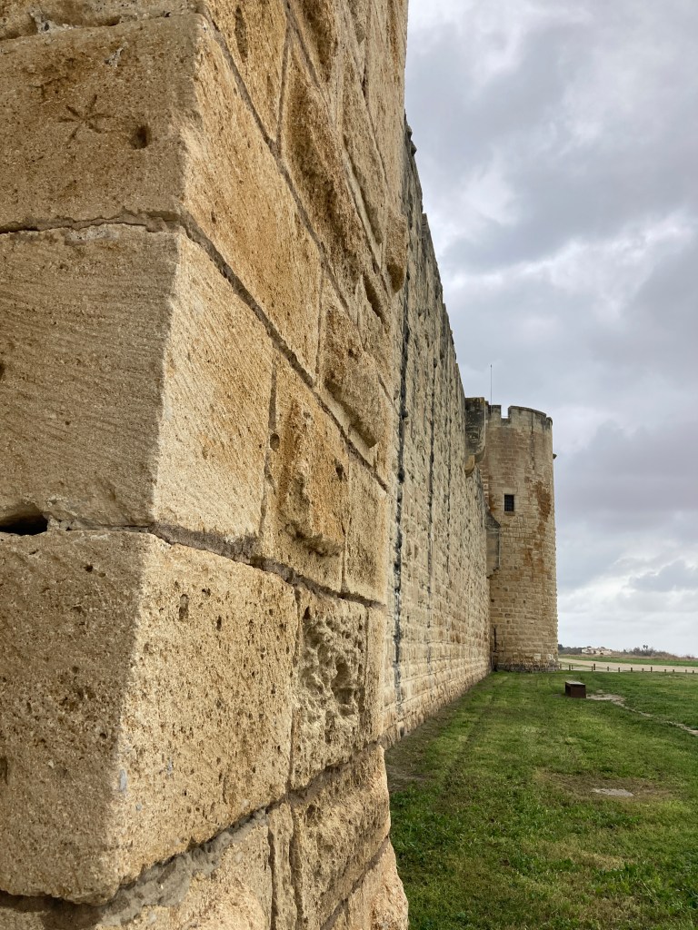 heißt die berühmte mittelalterliche Festungsstadt in der Camargue. Für den Franzosenkönig Ludwig(IX) „der Heilige“ war die Stadt, die er 1240 gründete und die in Form einer mittelalterlichen Bastide mit einer 1,6 km langen Mauer umgeben war, ein wichtiger Hafen am Mittelmeer, denn es war die Zeit der Kreuzzüge gen Jerusalem. Im Jahr 1270 brach Louis IX mit 10 000 Mann zum siebenten Kreuzzug auf nach Tunesien. Kathargo war schnell eingenommen, in Tunis traf er jedoch auf erbitterten Widerstand, und statt Eroberung wurde er belagert, das Trinkwasser faulte, die Tunesier schleuderten nachts Tierkadaver ins Lager und es brachen Seuchen aus, denen auch Louis am 25. August 1270 erlag. 1297 wurde er von Papst Bonifatius VIII heilig gesprochen, geblieben ist die sehr sehenswerte Stadt Aigues-Mortes. Im Sommer bestimmt sehr überlaufen, der Anzahl der Parkplätze nach zu urteilen, wir waren Ende März dort und es war sehr entspannt.