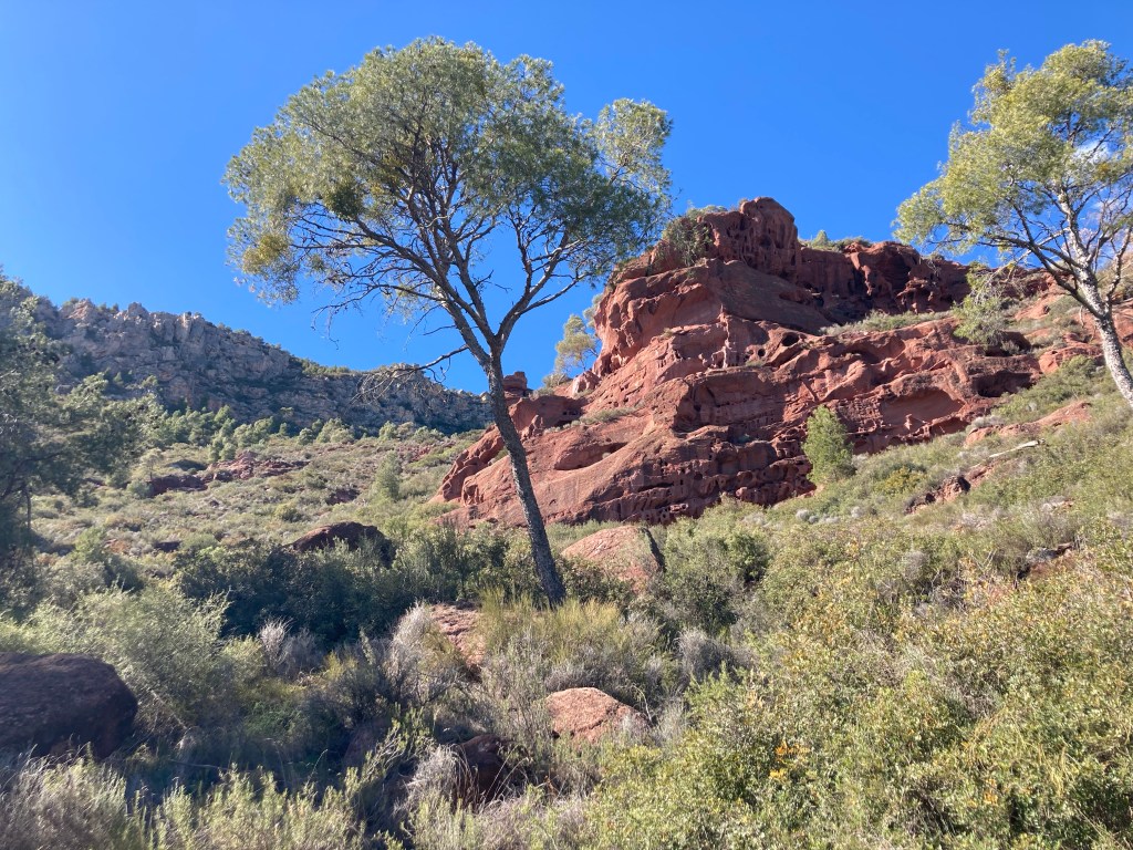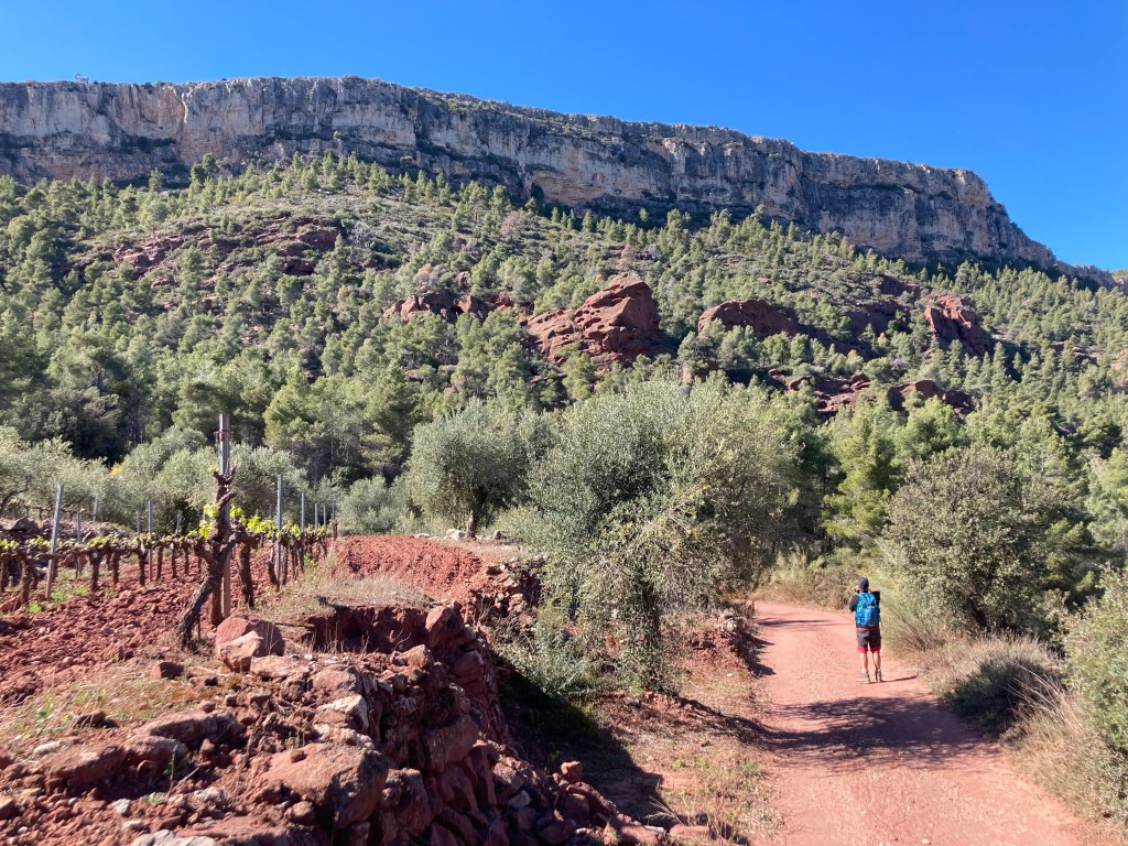 Vom Dorfrand von La Vilella Baixa erwandern wir uns das Tal nach El Loar durch Wein, Oliven und Mandeln, über Schiefer, neben Buntsandstein und unter Kalksediment-Felshängen. Ein Traum! Nicht zuletzt die kulinarischen Verlockungen: das Motto der Region vi + oli + paisatge = futura übersetzen wir mit Wein + Öl + Landschaft = Hier bleiben wir länger!