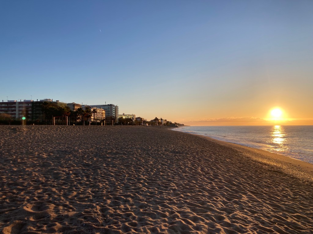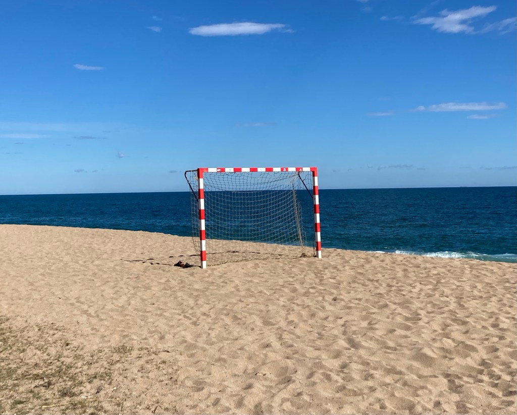 Nach Barcelona mit der Bahn: am einfachsten aus einem der Küstenorte nordwestlich davon, die sich viel Mühe geben, uns das Klischee eines Badeortes a la Lloret de Mar vorzuspielen. Zwischen Calella und Pineda de Mar finden wir den kleinen Campingplatz Bellsol zwischen Strand und Gemüsefeldern. Mit dem richtigen Blickwinkel verschwinden Menschen hinter Fischerbooten. Die verschlafene Vorsaison ist kleine Bühne für alte Bäderarchitektur und Beach-Sport-Farbenspiele.