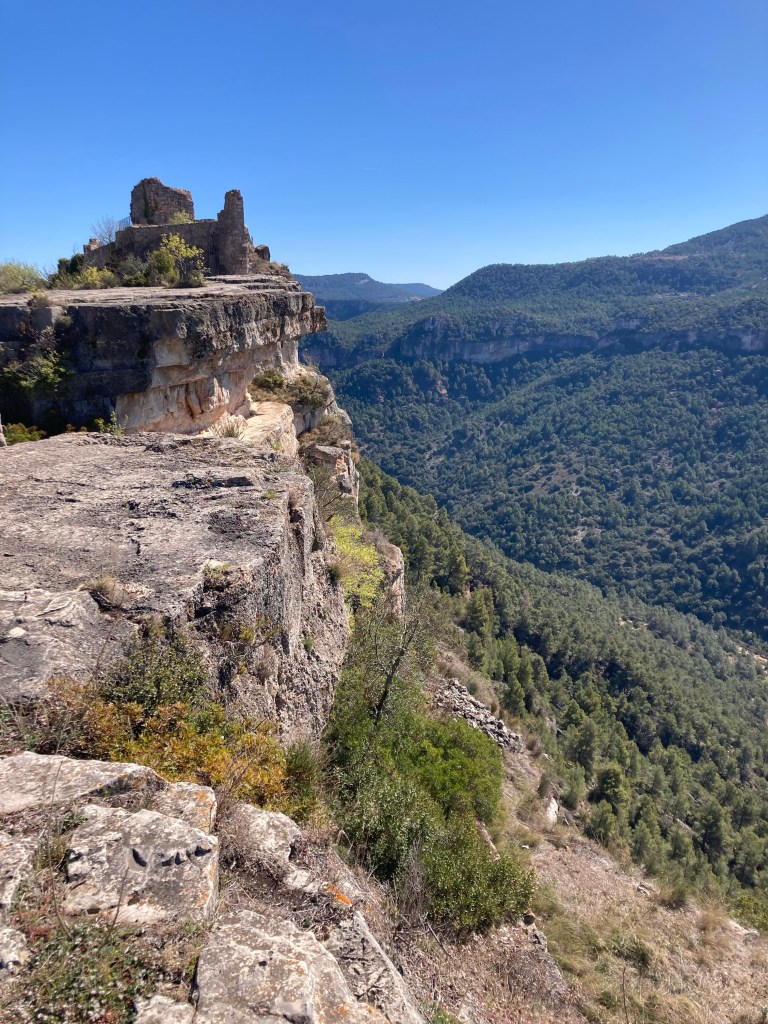 Tiefe Schluchten, rutschige Hänge und hohe Plateaus zwischen Ulldemolins und Margalef: für Kletterer ein Paradies, für uns erhöhter Puls. Und tatsächlich eine Einkehr mit local brew bei Sant Antoni.