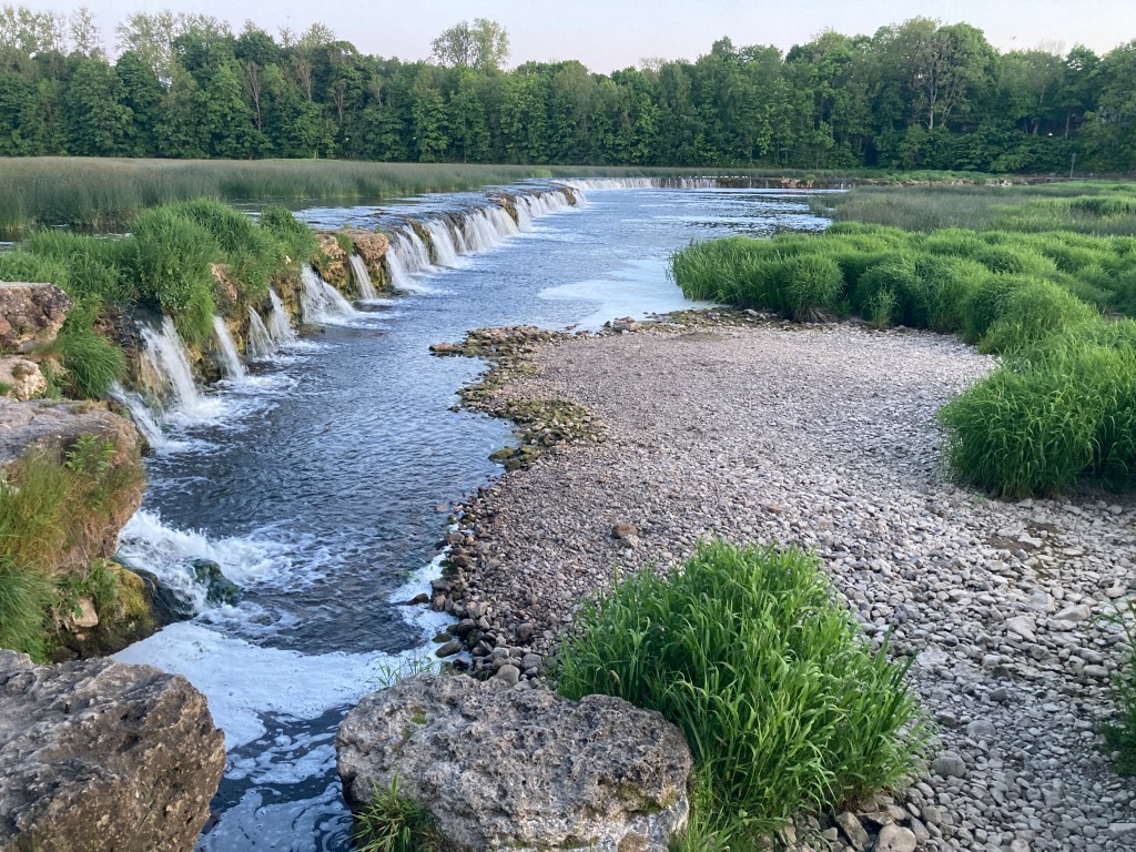 Gleich nach Ankunft der Fähre fahren wir zur etwa 100 km südlich von Ventspils gelegenen Stadt KuldĪga, die gleich mit zwei Besonderheiten aufwartet. Zum einen ist die Brücke über den Fluss Venta und die Innenstadt in die Liste der Weltkulturerbe aufgenommen und zum anderen befindet sich hier der breiteste Wasserfall Europas.