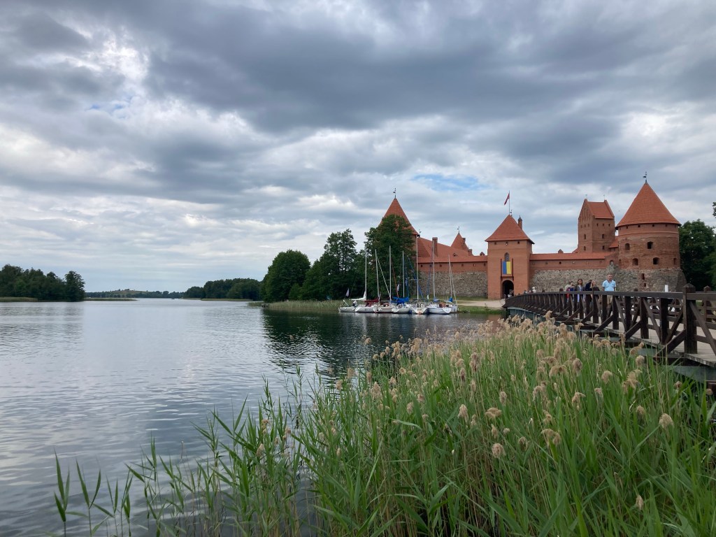 Auf dem Rückweg aus Vilnius in dem Aukštaitija NP machen wir einen Schlenker über Trakai: must-have-seen-Backstein-Burg auf Insel in segelbarem See an Ort mit süßen Holzhäusern (grün😍) und Bustouristen-Prägung, trotzdem entspannt wenig los: riesige Tretbootflotte in Vorsaison-Warteposition.