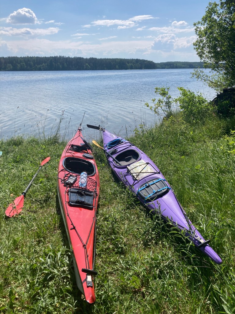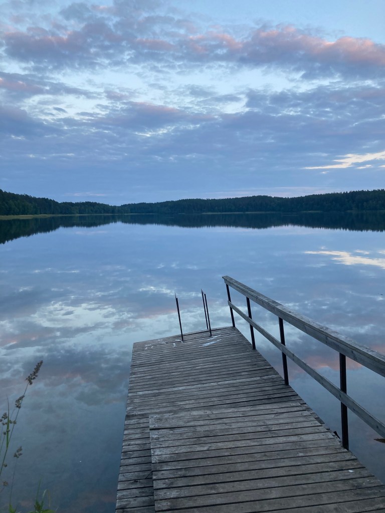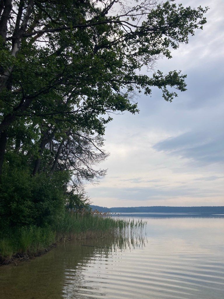 Auf dem Weg zurück in den Aukštaitija NP: Vorbei am Mittelpunkt Europas (und wir fühlten uns schon so östlich) paddeln wir uns zwei Tage im Labanoro Regionalpark östlich von Molėtai fest: bei schwülwarmem Wetter sind wir am, im und aufm Wasser des Siesartis gut aufgehoben, das Ufer des Baltaeji Lakajai ist einsames Nachtlager. Das Gewitter erwischt uns auf dem See Arsietas erst beim Boote Aufladen an der Badestelle in Antakalnis, der Regen kurz vorher. Bei Gewitter nicht aufs Wasser!🤓☝️ Die Abkühlung währt nur kurz – im Dorfladen gibts Eis.