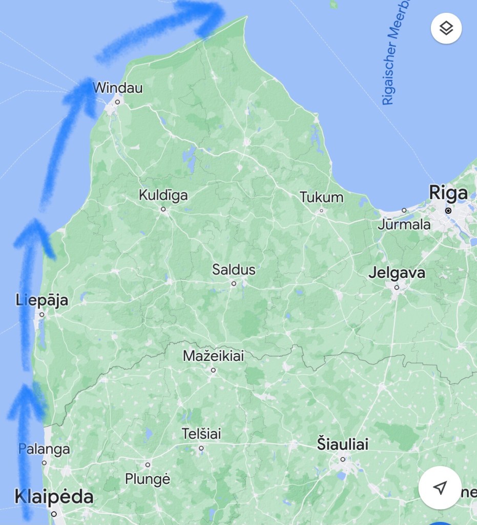 Am Kap Kolka kann man Skagen-like mit einem Bein in der Ostsee und einem Bein in der Rigaer Bucht stehen. Ansonsten gibt das Kap nicht soooo viel her, wenn man auf dem Weg hierher den Strand schon ausreichend genossen hat. Große Parkplätze, mehr Menschen, ein Café – OK. In die Rigaer Bucht rein wird die Küste weniger schön: zunehmend steiniger, besiedelter,… bis zum sandigen Boden der Bucht bei Jurmala: Badeort mit Highlife in Tüten – ohne uns!
