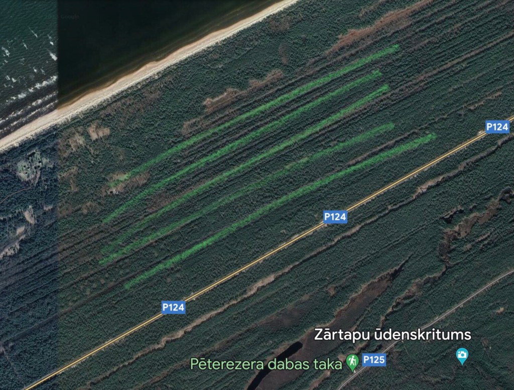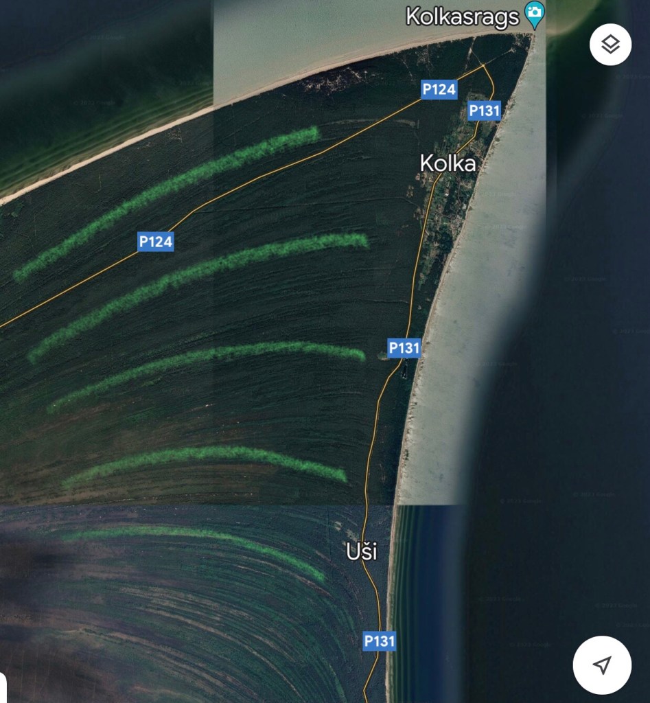 Parallel zur Küste verläuft eine Landstraße P124, die vor 5 Jahren noch deutlich huppeliger war: unser hüpfender T5 auf dem Anhänger des vom ADAC beauftragten Abschleppdienstes… Von Ventspils kommend benimmt sich der Weg sehr bald sehr gleichmütig. Würde man nur den „Touristenmagneten“ Kap Kolka ansteuern, würde man nicht entdecken, was sich hinter dem Küstenwald verbirgt, den die wenigen Dörfer liegen 1-2 km nördlich in Strandnähe, u.a.: