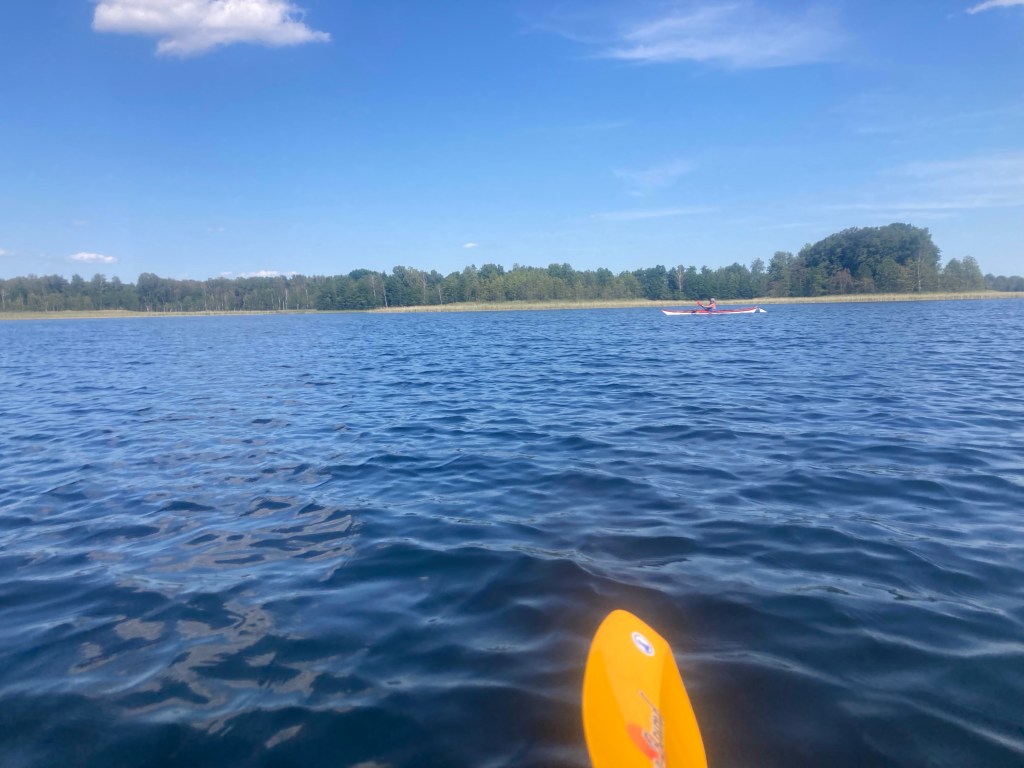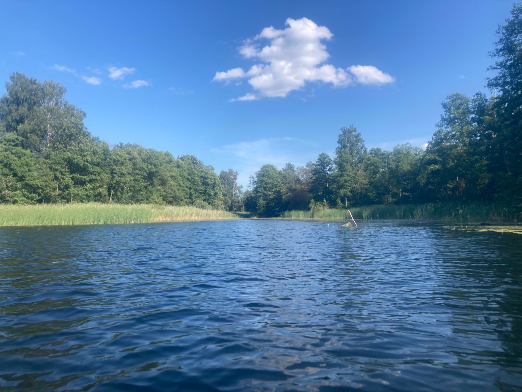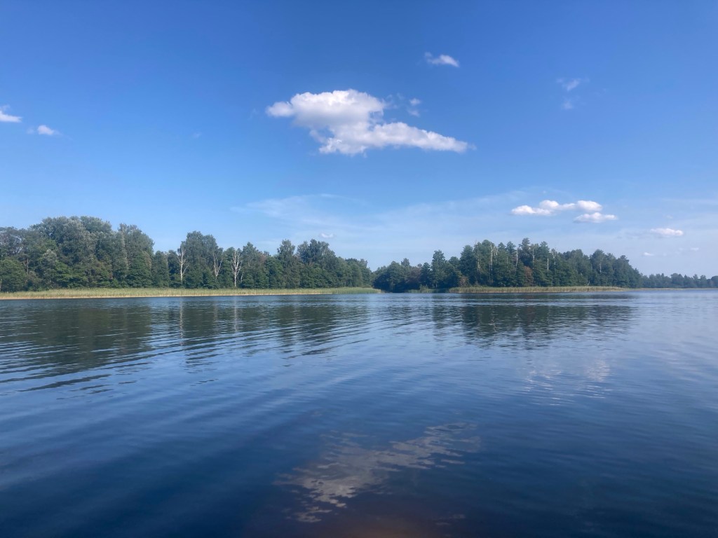 Der Dridz ist mit 63m Lettlands tiefster See. Für uns sichtbar: klares Wasser, weniger Schilf, steilere Ufer, ein paar Inseln in Maulwurfhügelform, sieht schick schwedisch aus, heute zu westwindig für einen Schlenker nach Osten.