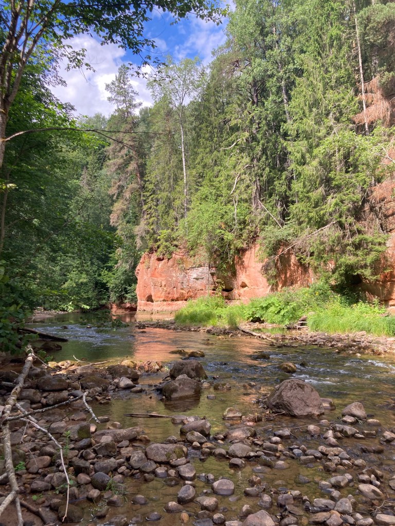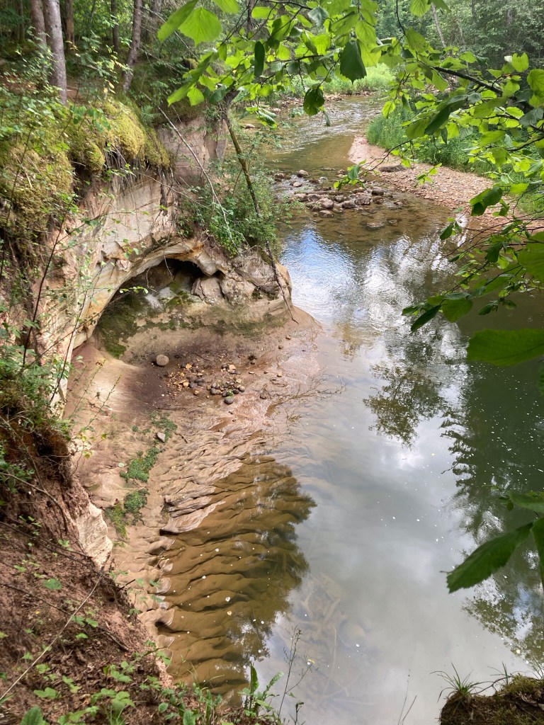 Wir gucken uns lieber die Amata an: Zulauf der Gauja und im Sommer definitiv nicht paddelbar. Lettland ist voll mit überdachten Picknick-Plätzen, nur am Umkehrpunkt der Wander-Tour am Mega-Super-Aussichtsfelsen Zvartesiezis ist nur der Fahrradständer und das Klo überdacht. Und das NP-Info-Café geschlossen. An einem Sonntag im Juli? Seriously, @zvartesiezis? Closed on a sunday in July and no rainshelter except for bikes?🙄 Sonst eine empfehlenswerte Wanderung (6km) am Fluss entlang, begleeitet von Hain-Wachtel-Weizen (diese Halbschmarotzer) in Devon-Sandstein unter Eiszeit-Geschiebe.